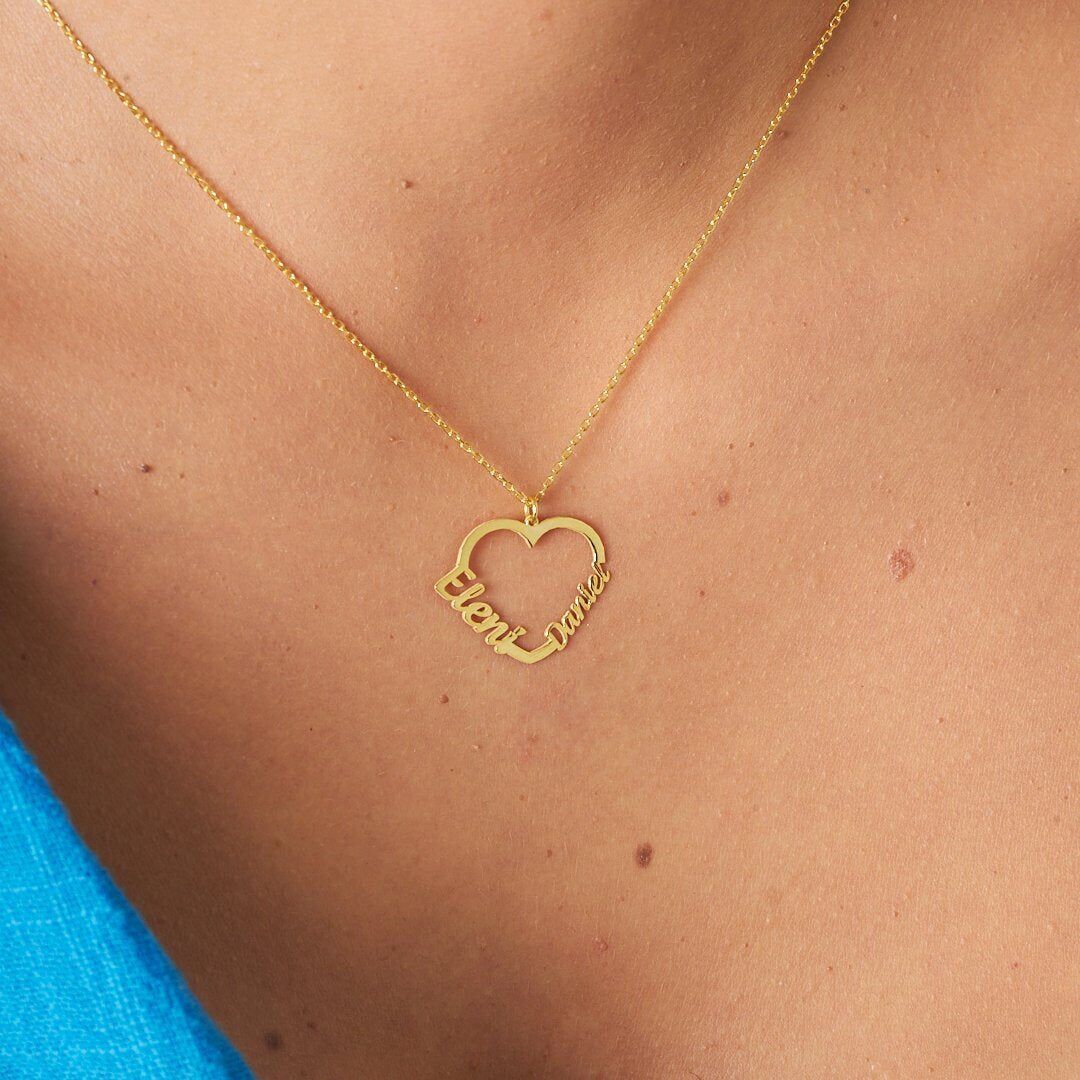 İsim Kolyesi Kalpli İsim Kombinasyonlu Kolye - 925 Ayar Gümüş