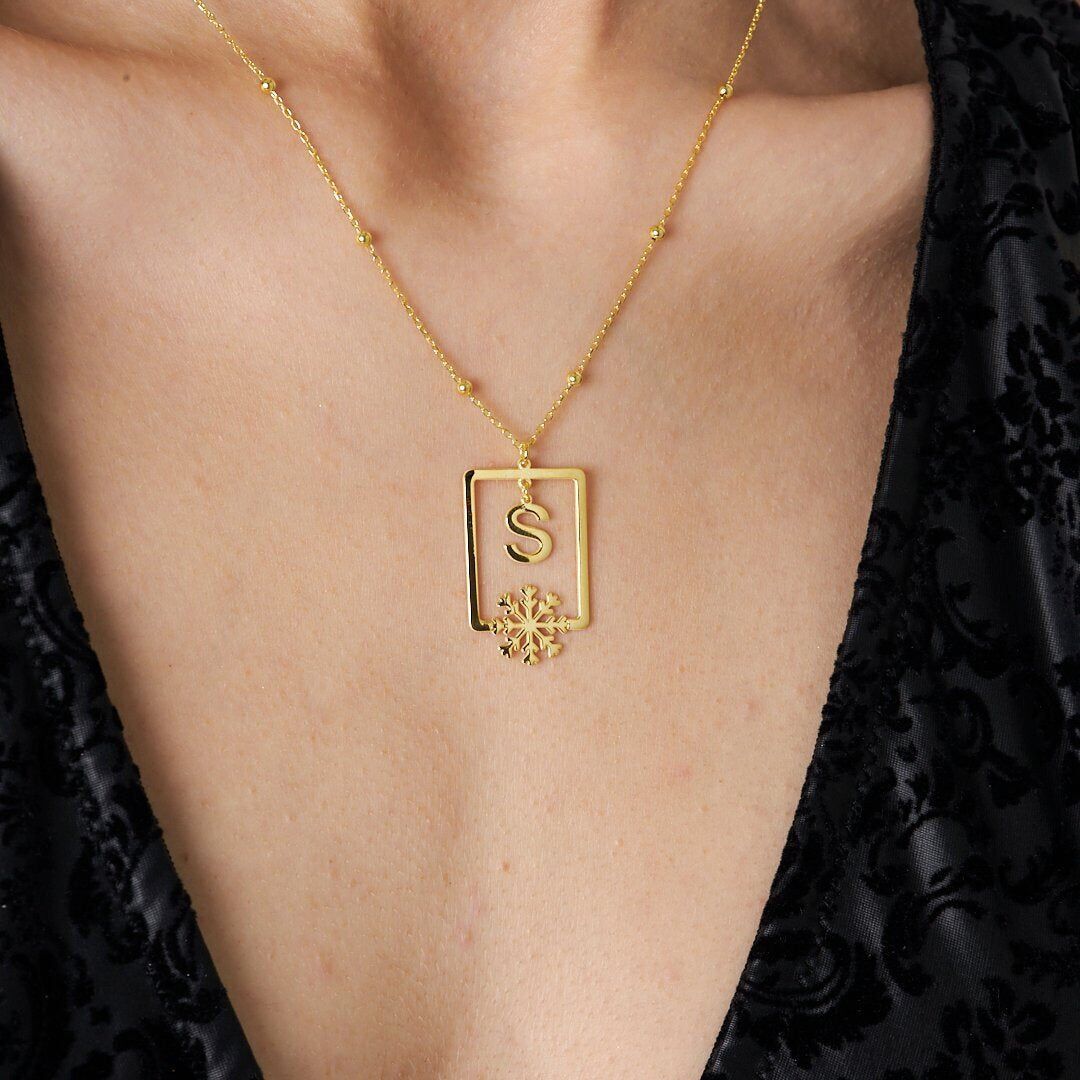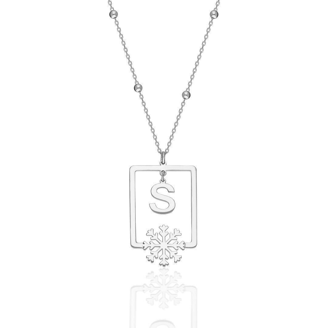 İsim Kolyesi Kar Taneleri Harf Kolyesi - 925 Ayar Gümüş