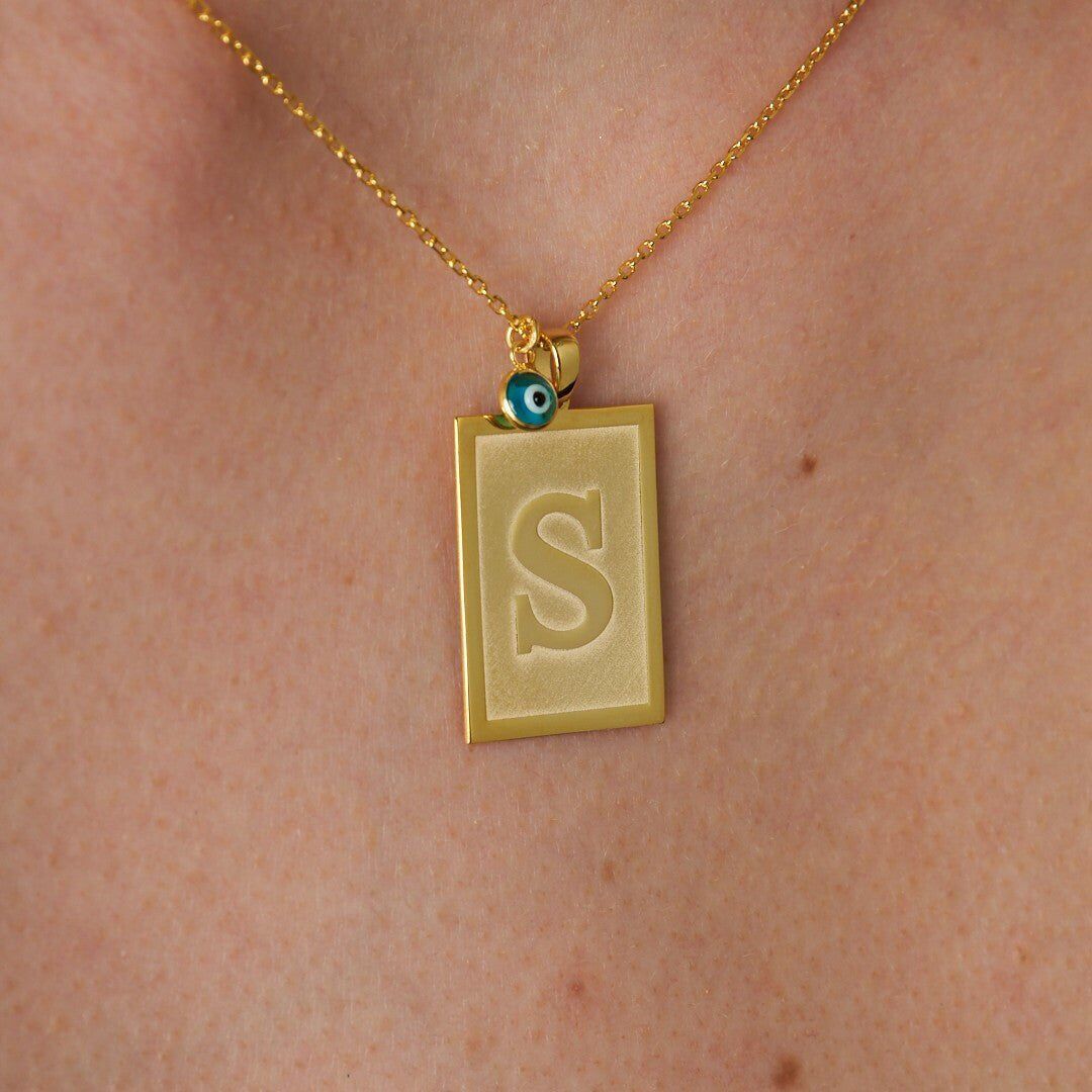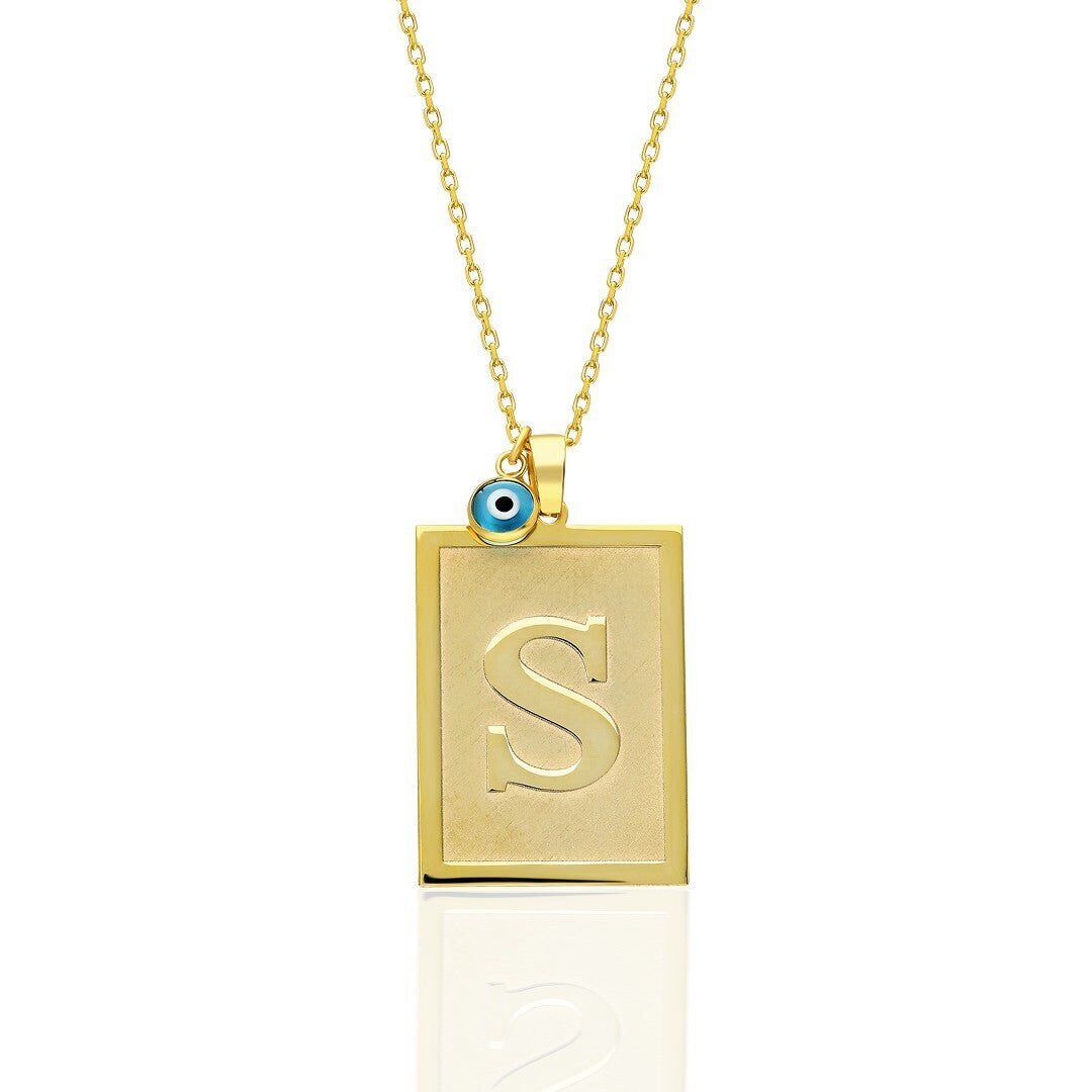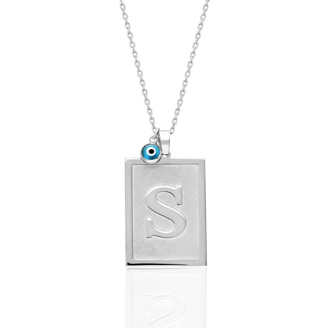 İsim Kolyesi Kare Tabak Nazar Harfli Kolye - 925 Ayar Gümüş