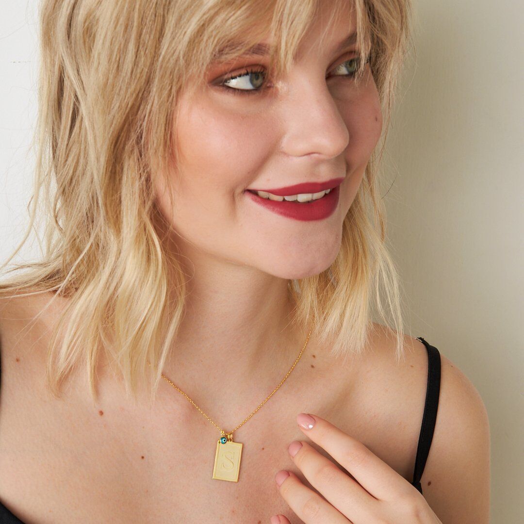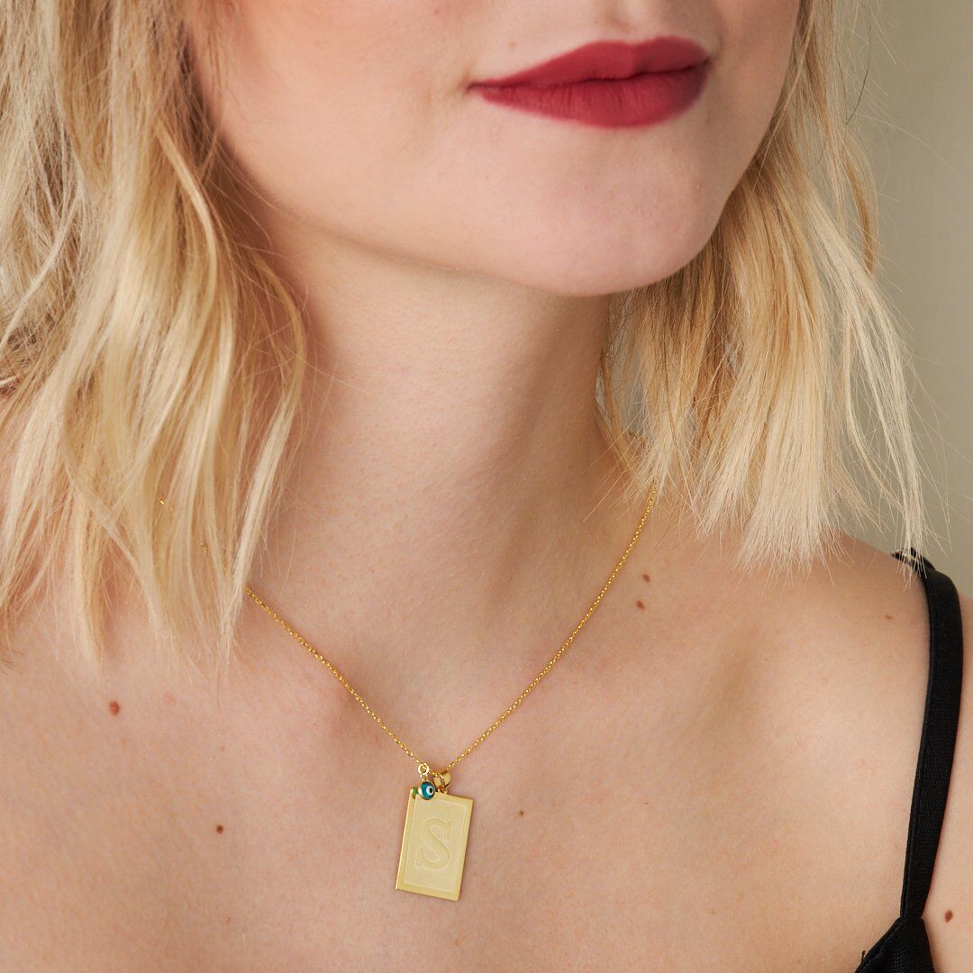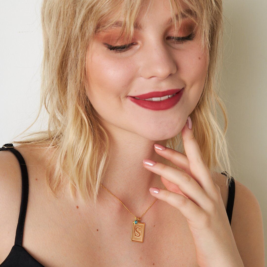 İsim Kolyesi Kare Tabak Nazar Harfli Kolye - 925 Ayar Gümüş