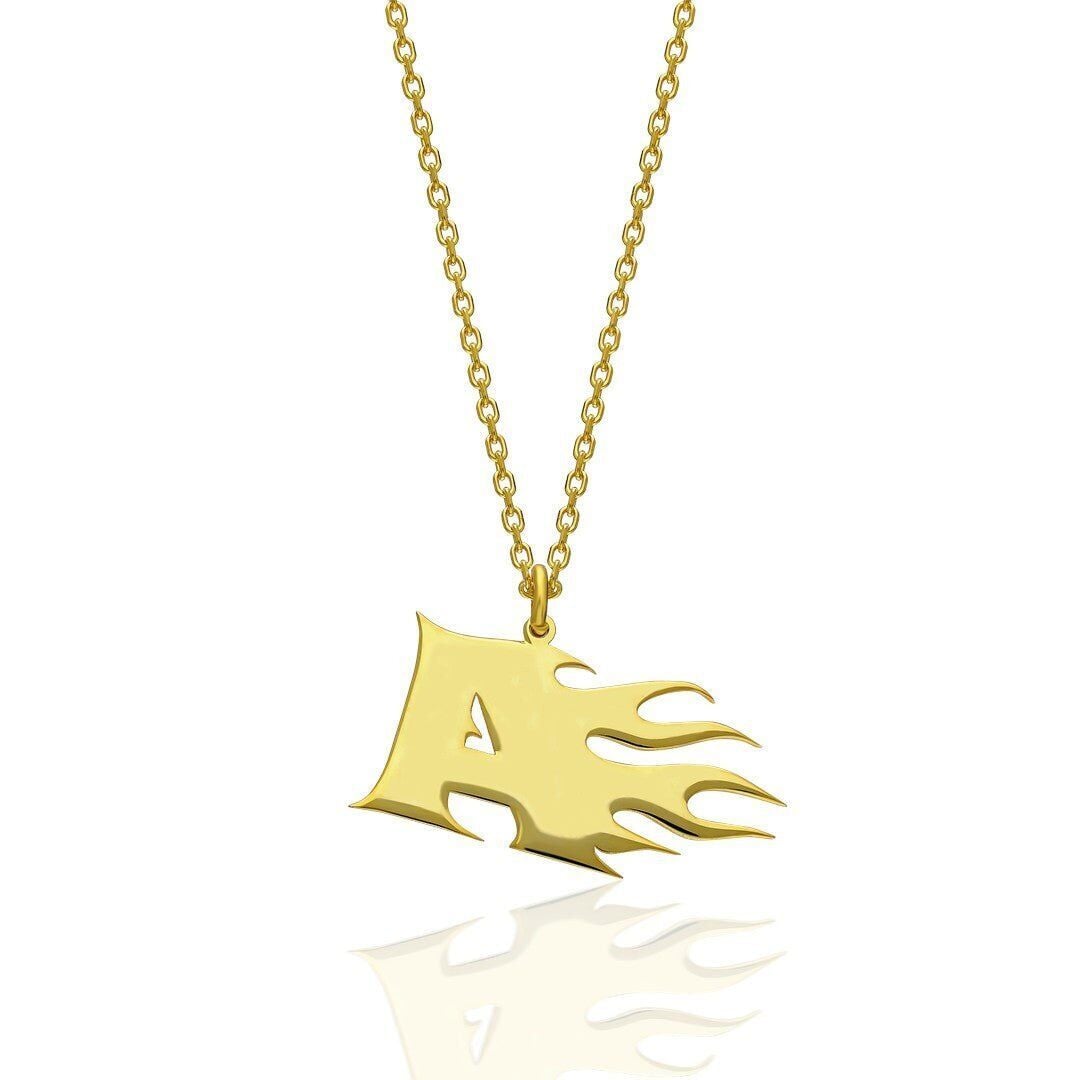 İsim Kolyesi Kolye Alevli Harfli - 925 Ayar Gümüş