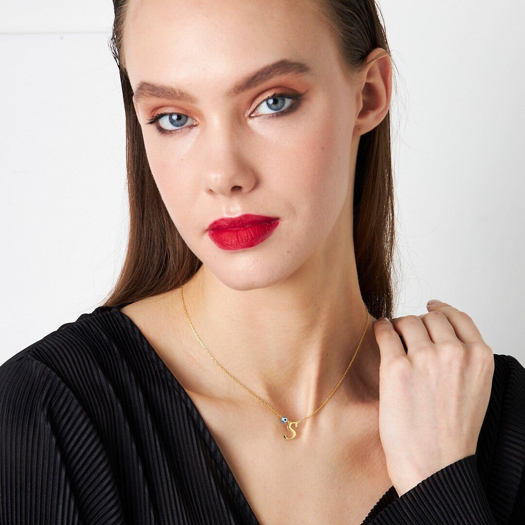 İsim Kolyesi Kötü Göz İnce Harfler Kolye - 925 Ayar Gümüş, 925 ayar gümüşün zarifliğini modern tasarımla buluşturuyor. El işçiliğiyle üretilen bu İsim Kolyesi Kötü Göz İnce Harfler Kolye, her kombine uyum sağlayan şık bir aksesuardır.