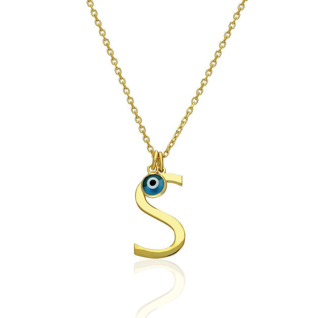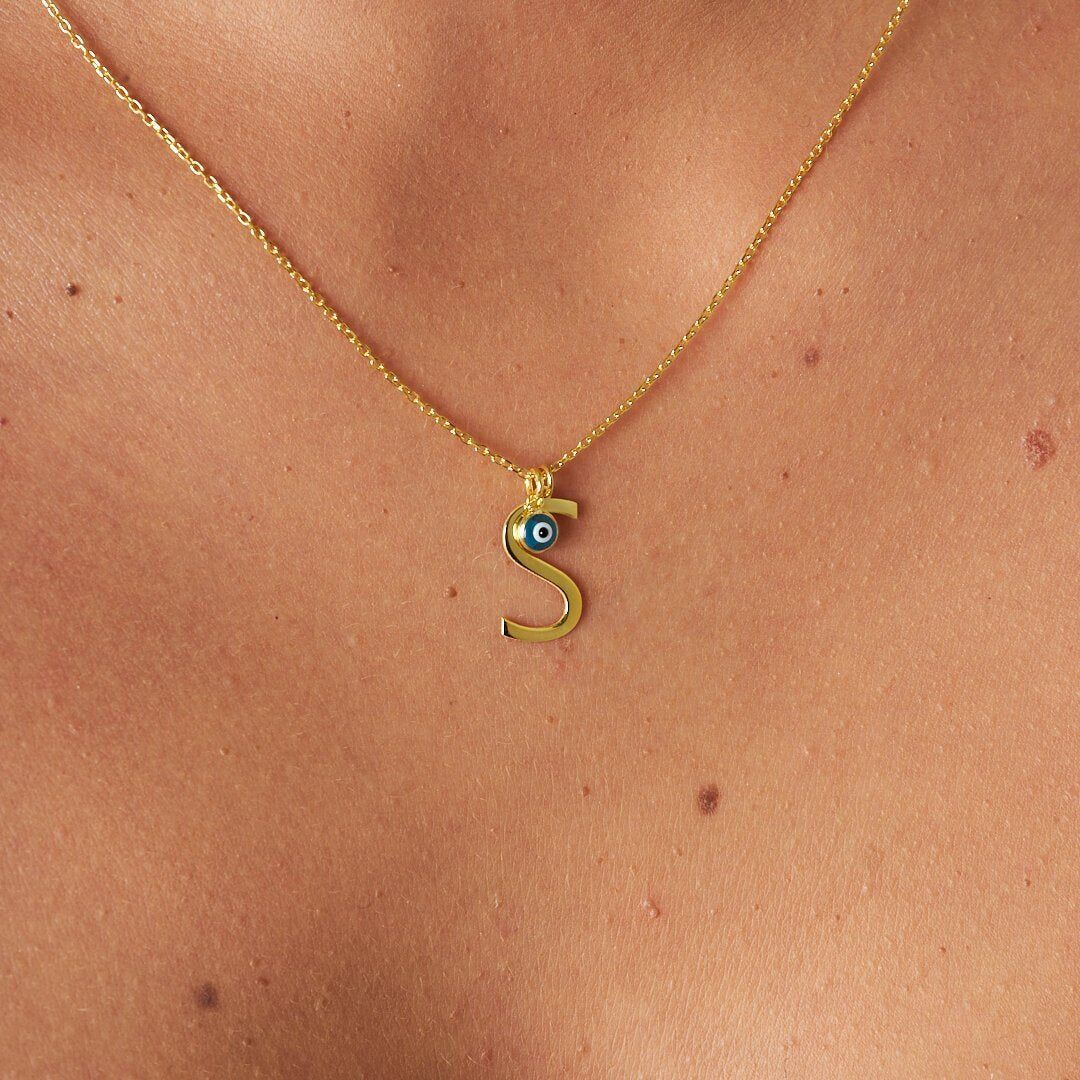 İsim Kolyesi Kötü Göz Mektup Kolyesi 1 - 925 Ayar Gümüş