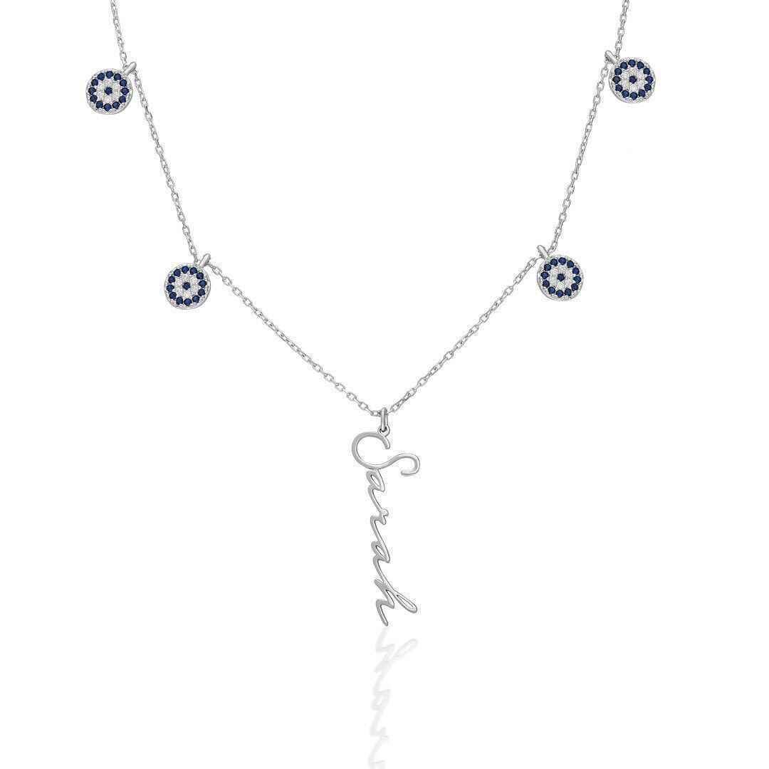 İsim Kolyesi Nazar Boncuklu El Yazısı Kolye - 925 Ayar Gümüş, 925 ayar gümüşün zarifliğini modern tasarımla buluşturuyor. El işçiliğiyle üretilen bu İsim Kolyesi Nazar Boncuklu El Yazısı Kolye, her kombine uyum sağlayan şık bir aksesuardır.