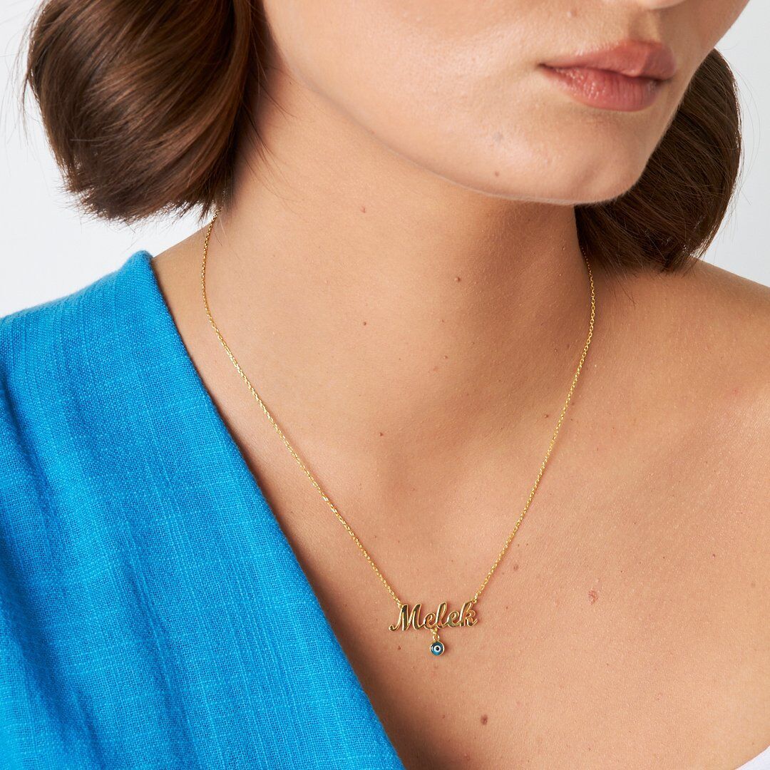 İsim Kolyesi Nazar İncili İsim Kolyesi - 925 Ayar Gümüş, 925 ayar gümüşün zarifliğini modern tasarımla buluşturuyor. El işçiliğiyle üretilen bu İsim Kolyesi Nazar İncili İsim Kolyesi, her kombine uyum sağlayan şık bir aksesuardır.