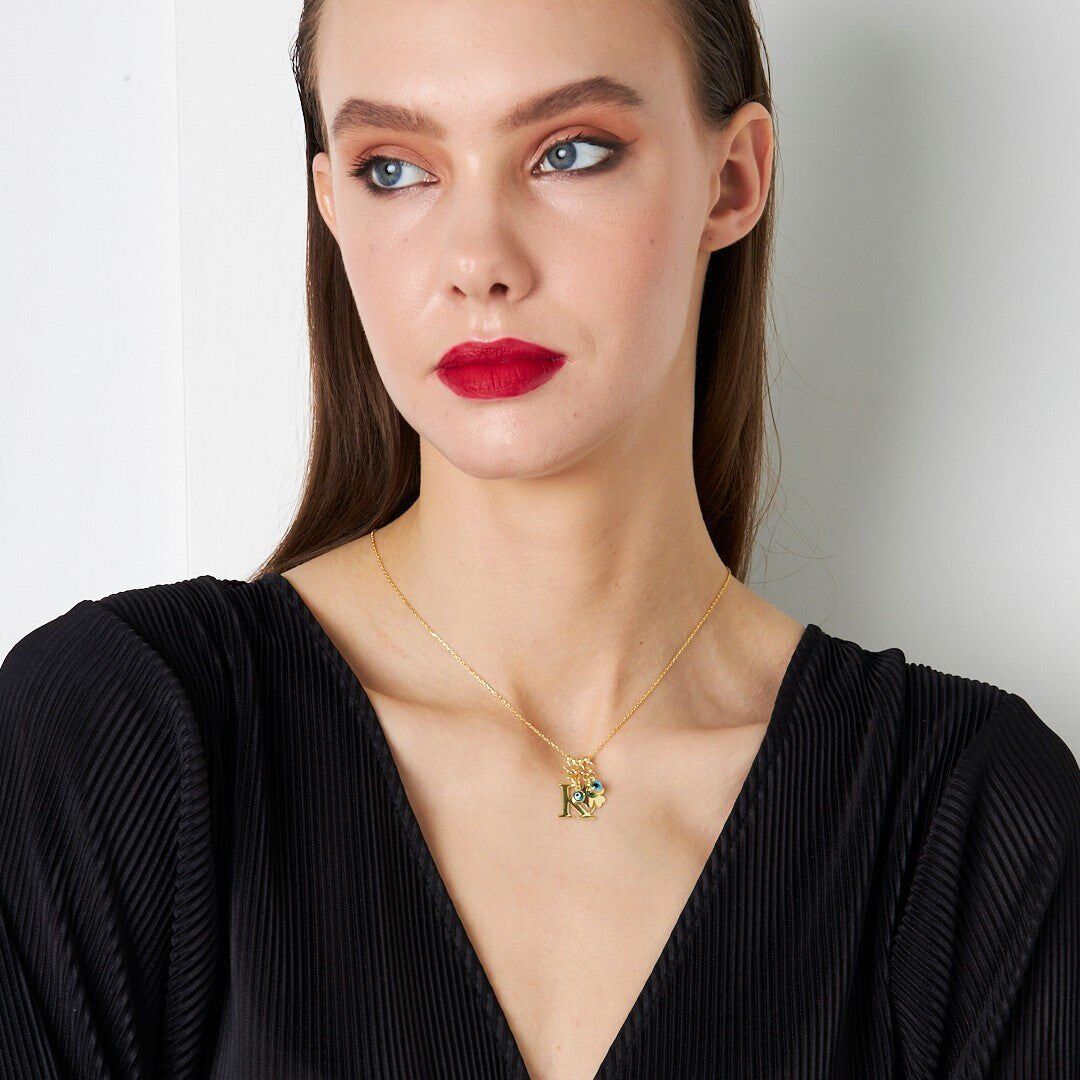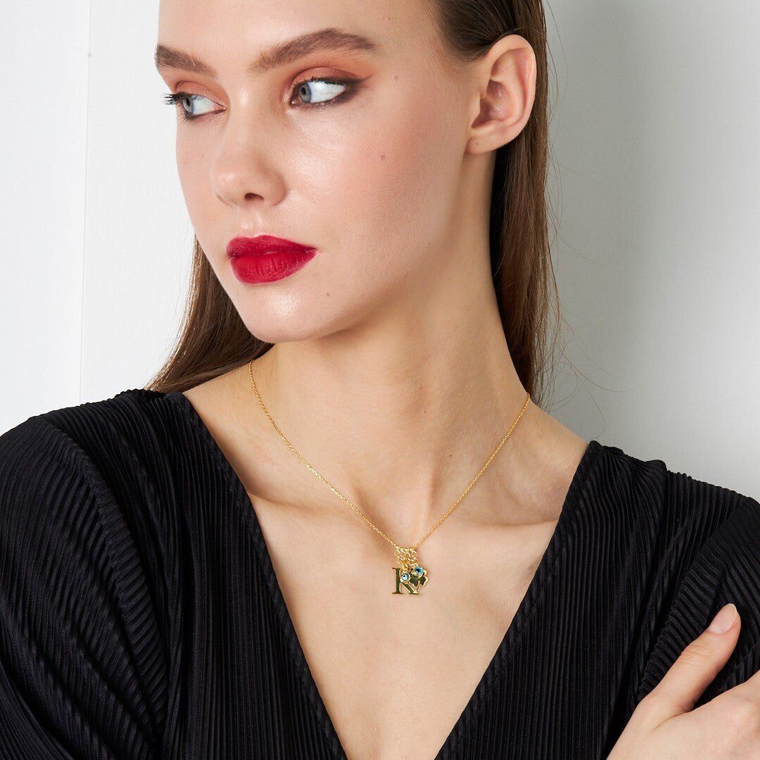 Nazar Yonca Harf Kolyesi - 925 Ayar Gümüş, 925 ayar gümüşün zarifliğini modern tasarımla buluşturuyor. El işçiliğiyle üretilen bu Nazar Yonca Harf Kolyesi, her kombine uyum sağlayan şık bir aksesuardır.