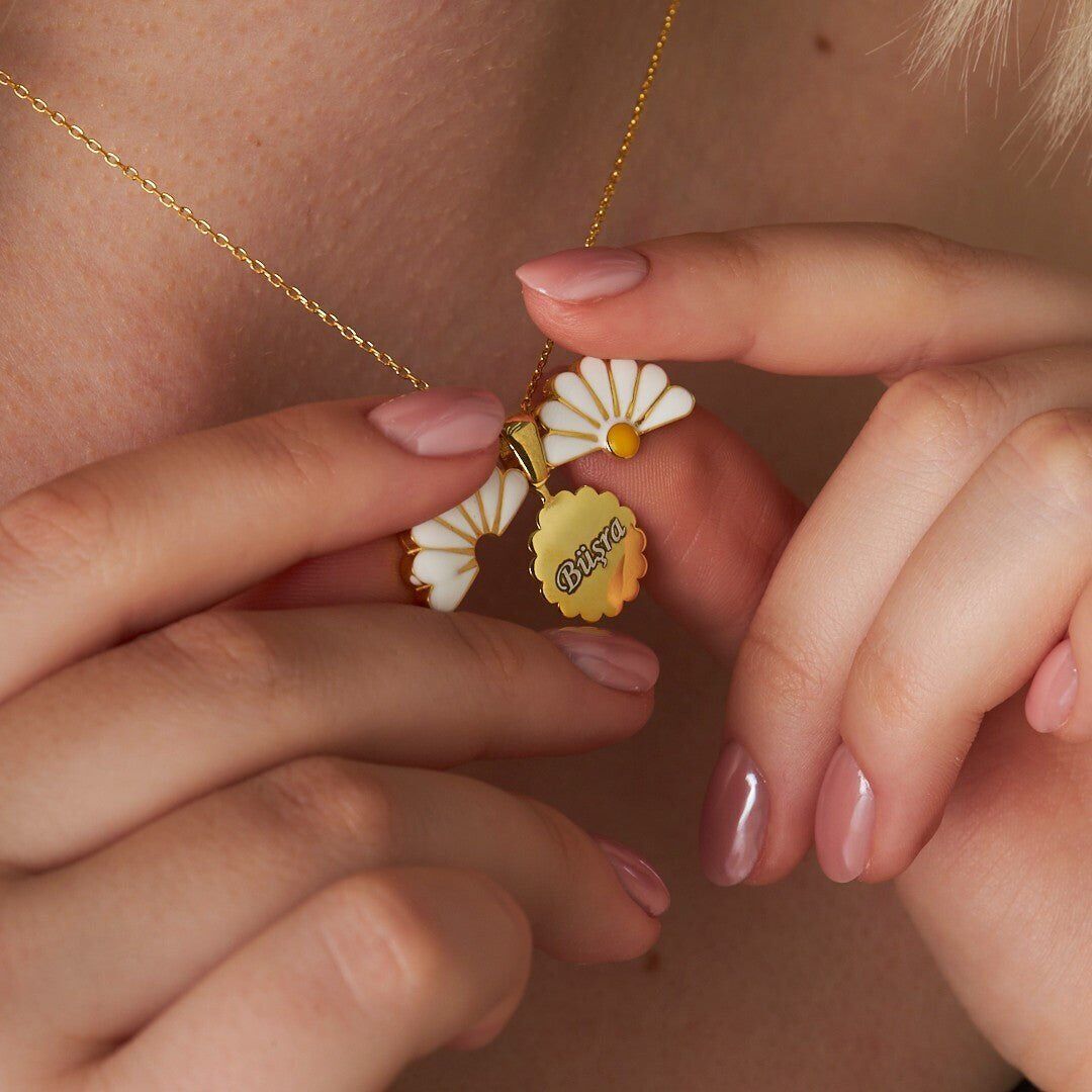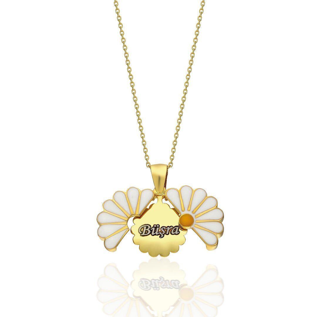 İsim Kolyesi Papatya Kolyesi İsimli - 925 Ayar Gümüş