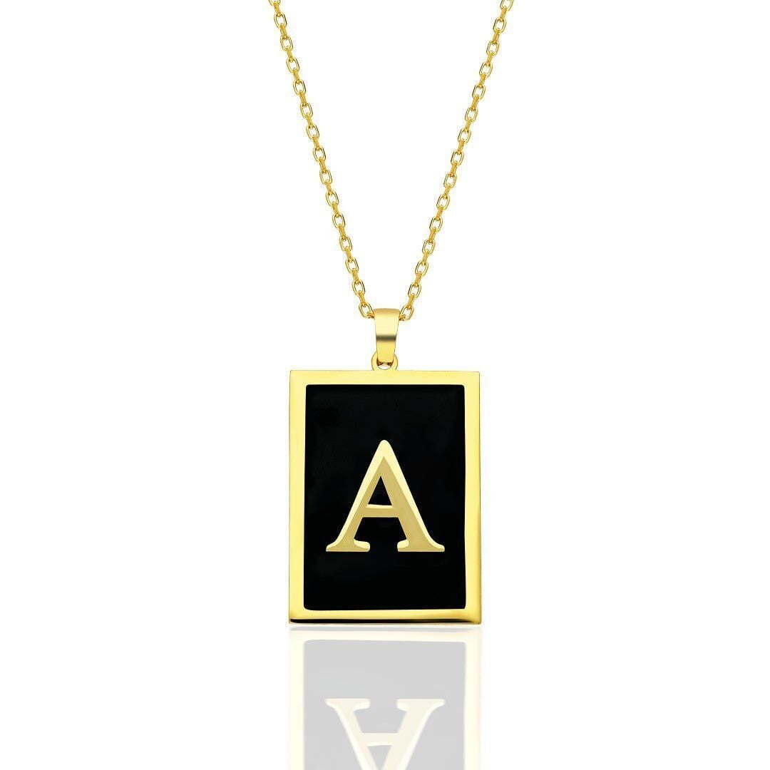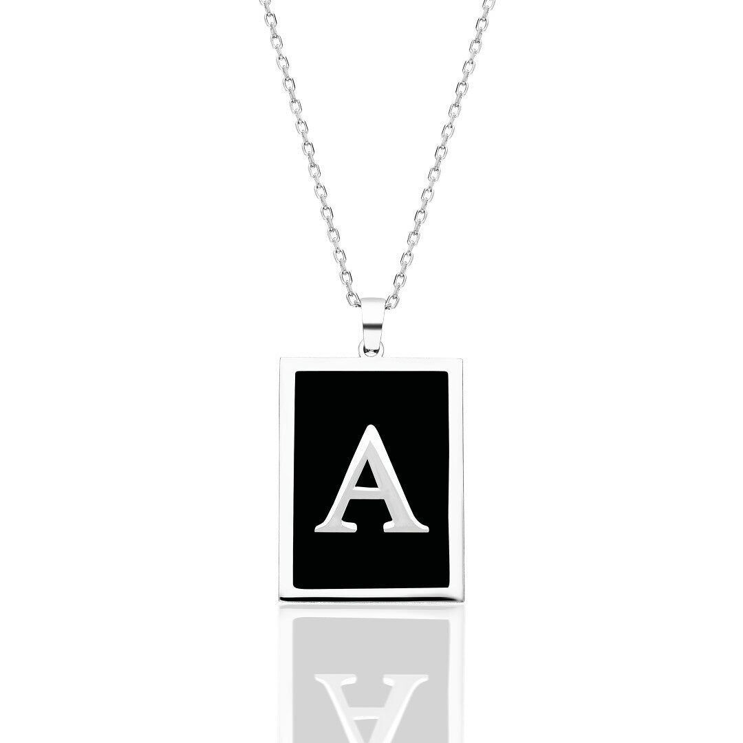 İsim Kolyesi Siyah Mineli Kare Harfli Kolye - 925 Ayar Gümüş