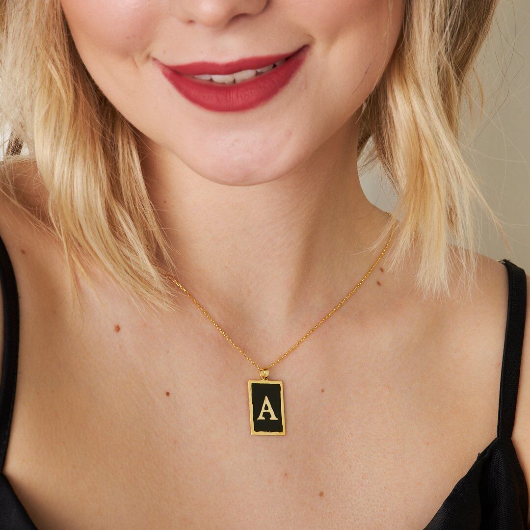 İsim Kolyesi Siyah Mineli Kare Harfli Kolye - 925 Ayar Gümüş, 925 ayar gümüşün zarifliğini modern tasarımla buluşturuyor. El işçiliğiyle üretilen bu İsim Kolyesi Siyah Mineli Kare Harfli Kolye, her kombine uyum sağlayan şık bir aksesuardır.