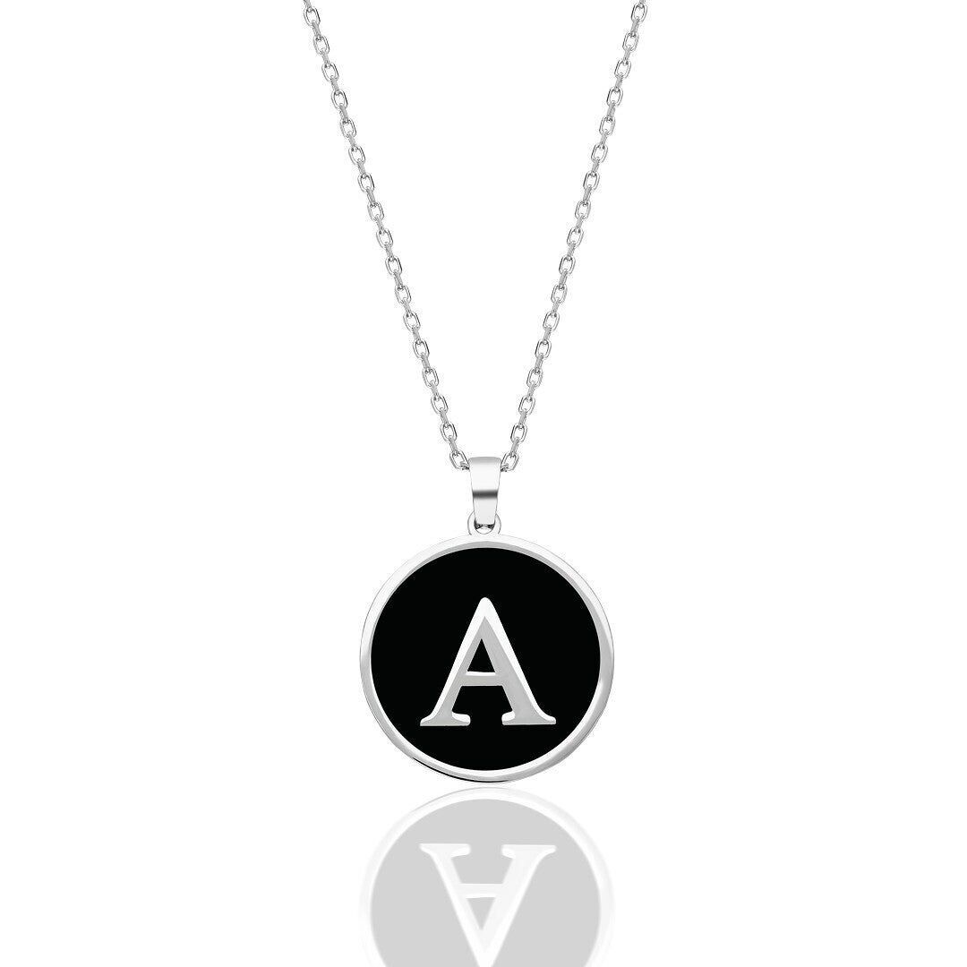İsim Kolyesi Siyah Mineli Oval Harfli Kolye - 925 Ayar Gümüş