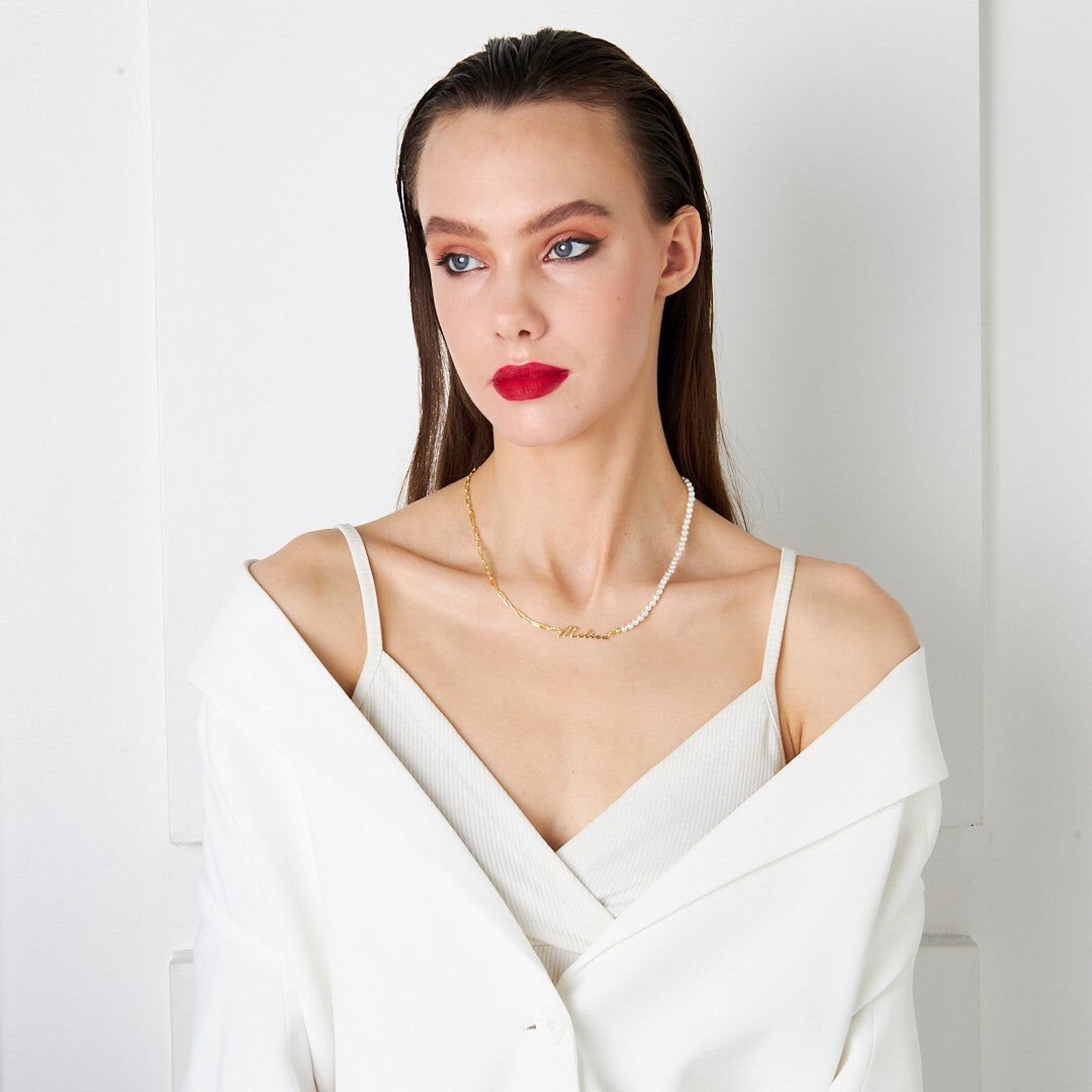 isim kolyesi - yarım incili el yazısı isim kolyesi
