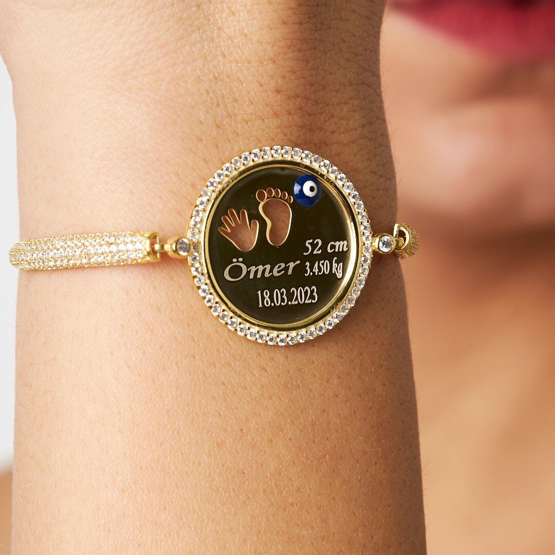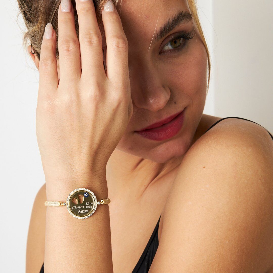 Günlük kullanım için ideal olan İsimli Bebek El Ve Ayak Bileziği, sadeliği ve zarafetiyle her tarza uyum sağlar. Güçlü mandal kilit sistemi sayesinde gün boyu emniyetle kullanabilirsiniz.