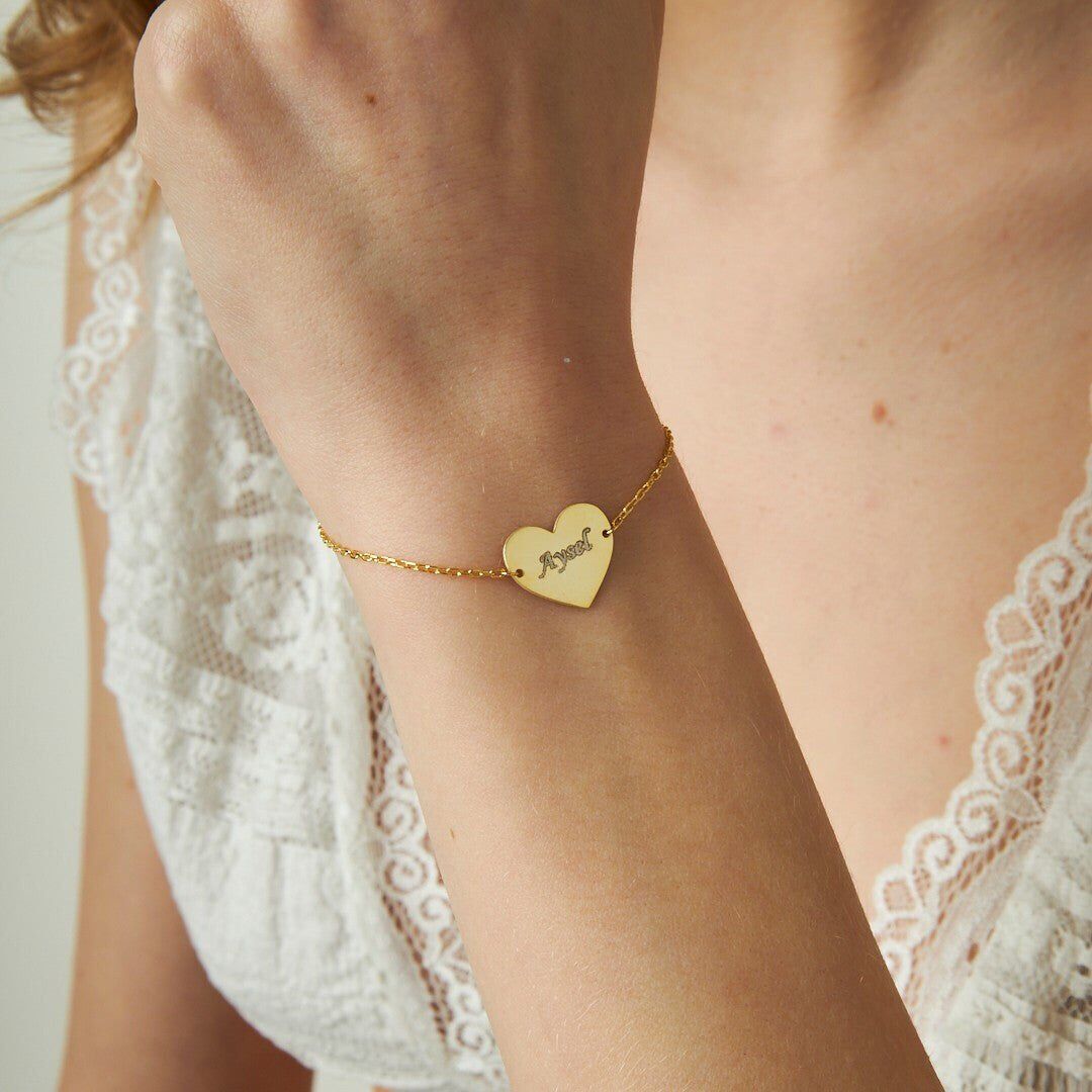 Asker Jewelry güvencesiyle hazırlanan İsimli Kalp Bileziği, kalite ve estetiği bir arada sunar. İsimli Kalp Bileziği modelini şimdi keşfedin.