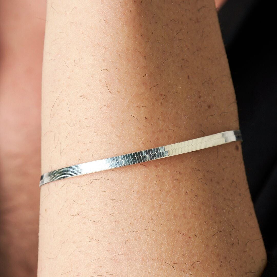 İtalyan Yassı Zincir Bileklik - 925 Ayar Gümüş, 925 ayar gümüşün dayanıklılığını şık tasarımla birleştiriyor. Her kombine uyum sağlayan bu İtalyan Yassı Zincir Bileklik, bileğinizi şık ve göz alıcı kılacak.
