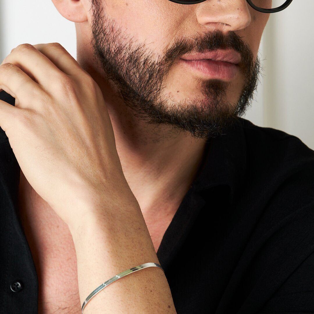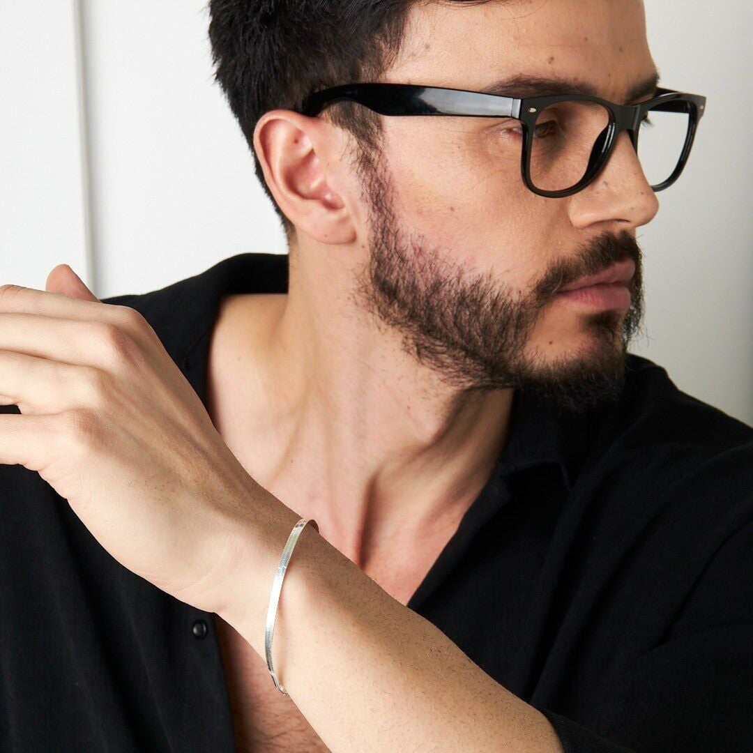 925 ayar gümüşten üretilen İtalyan Yassı Zincir Bileklik, hassas işçiliği ve uzun ömürlü yapısıyla öne çıkar. Yüzeyi özel parlatma işlemiyle işlenmiş olup ışığı mükemmel biçimde yansıtır.