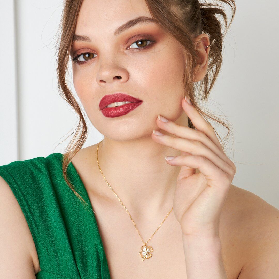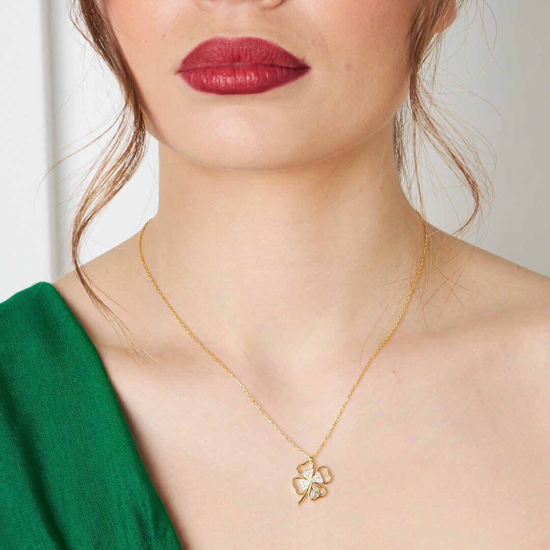 kalp taşlı yonca kolye