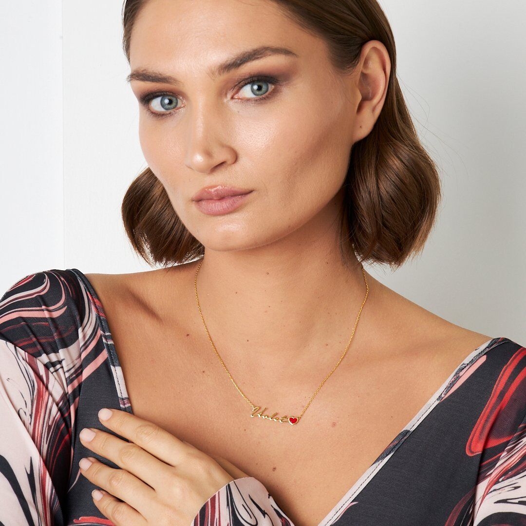 Asker Jewelry güvencesiyle üretilen Kırmızı Kalp İsim Kolyesi - 925 Ayar Gümüş, orijinallik sertifikasıyla birlikte teslim edilmektedir. Sevdiklerinize özel bir hediye arıyorsanız, Kırmızı Kalp İsim Kolyesi modelimiz mükemmel bir seçimdir.