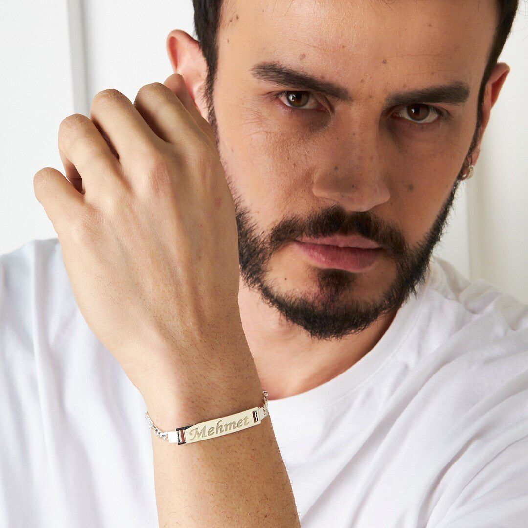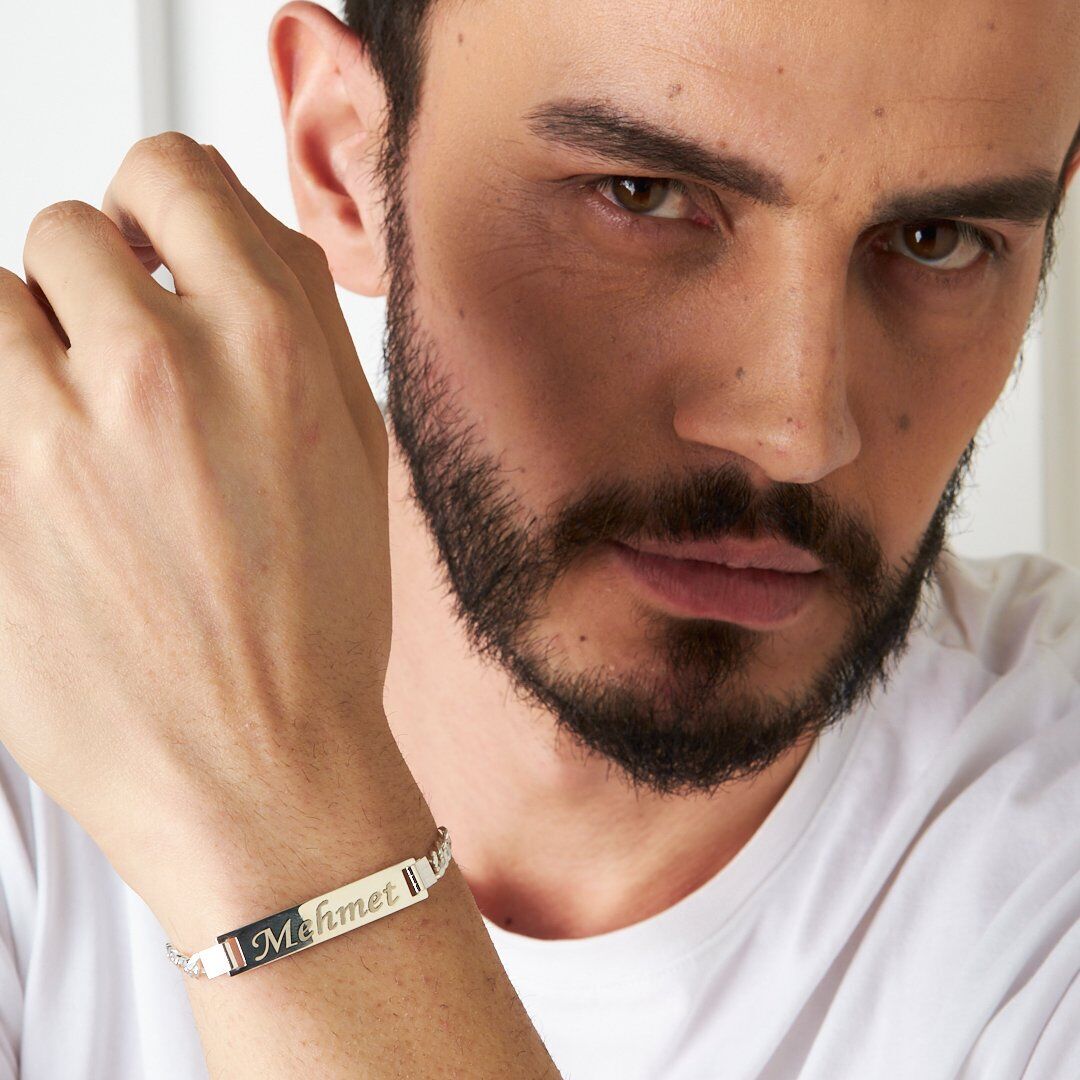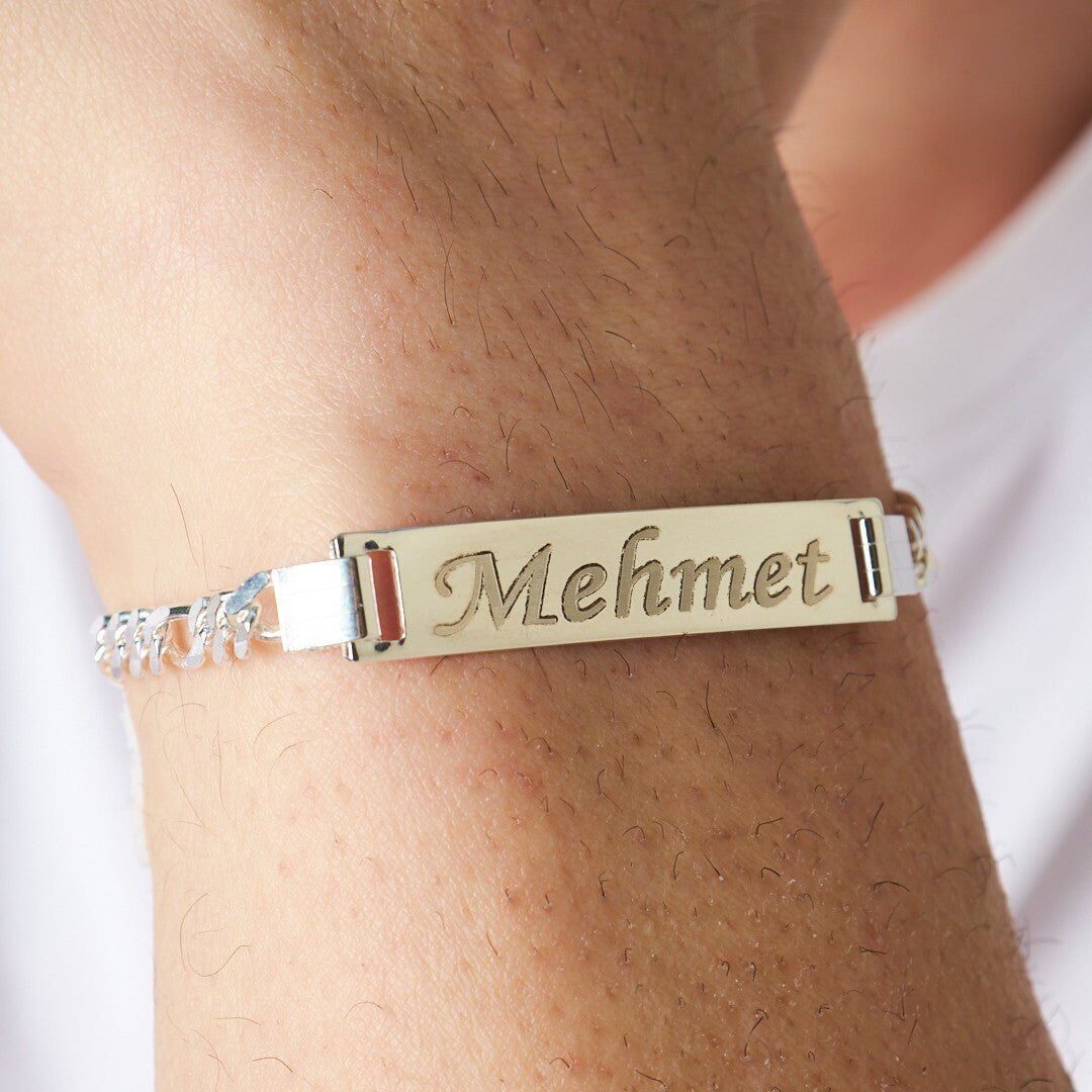 Kişiselleştirilmiş Plakalı İsim Bileziği, 925 ayar gümüşün dayanıklılığını şık tasarımla birleştiriyor. Her kombine uyum sağlayan bu Kişiselleştirilmiş Plakalı İsim Bileziği, bileğinizi şık ve göz alıcı kılacak.