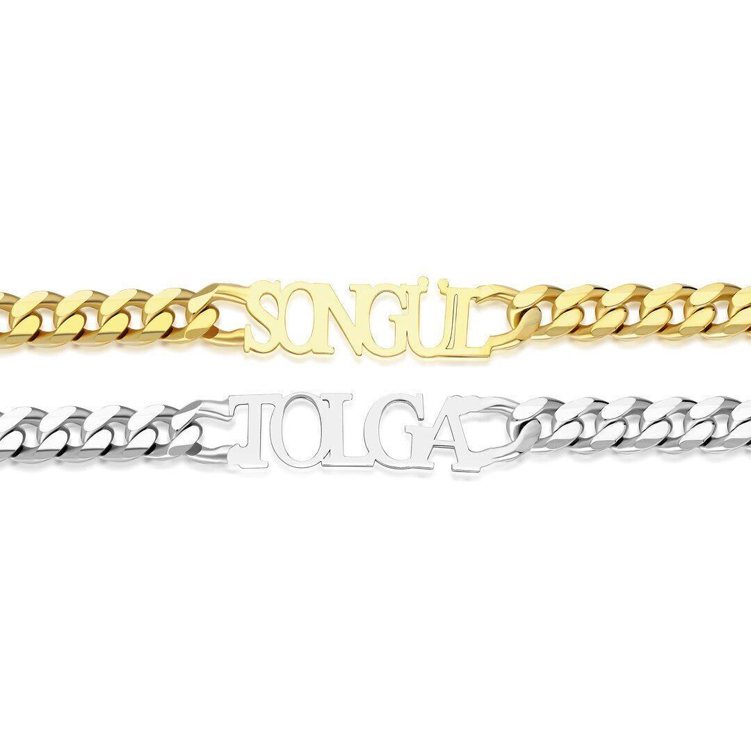 Günlük kullanım için ideal olan Küba Zincir İsim Bileklik Seti, sadeliği ve zarafetiyle her tarza uyum sağlar. Güçlü mandal kilit sistemi sayesinde gün boyu emniyetle kullanabilirsiniz.