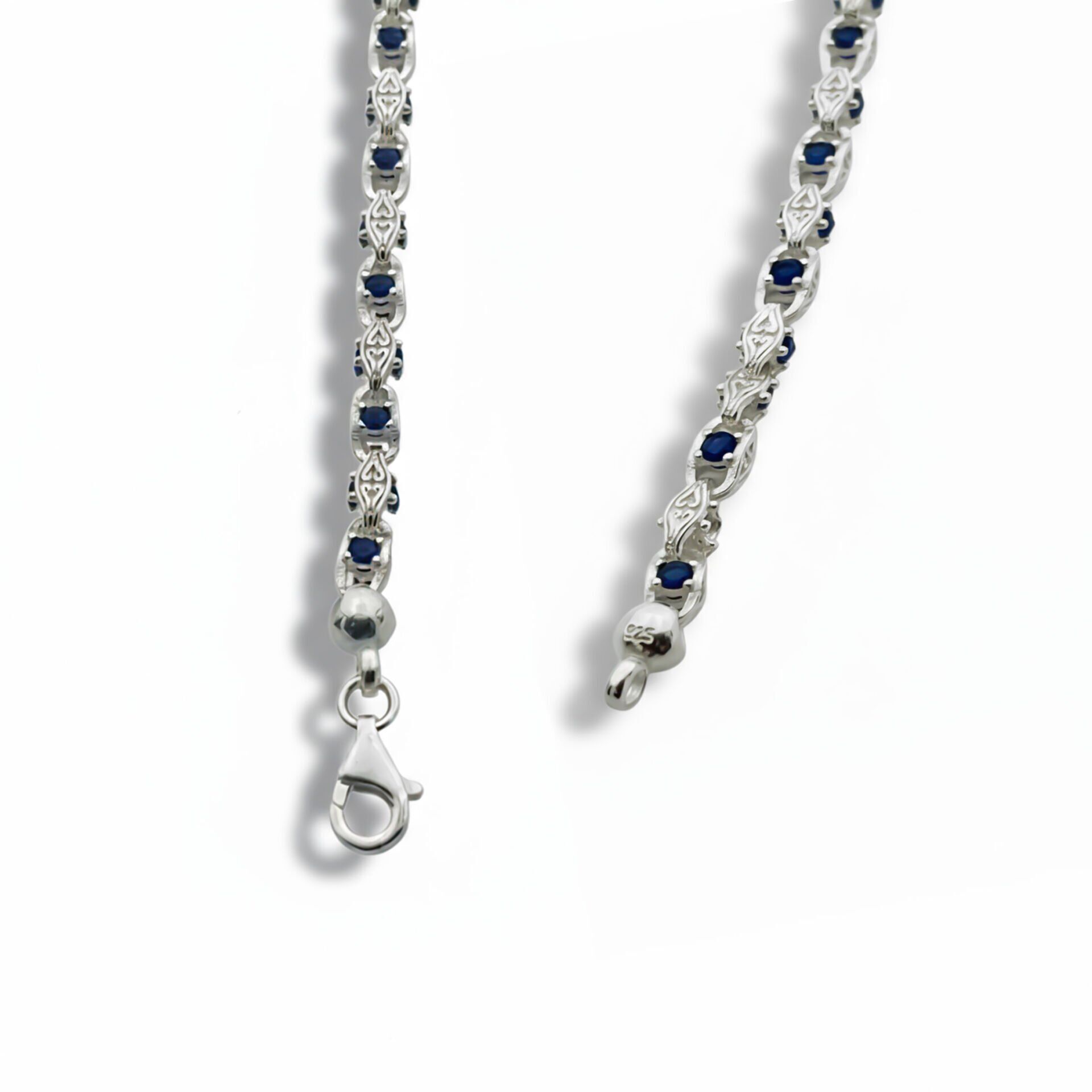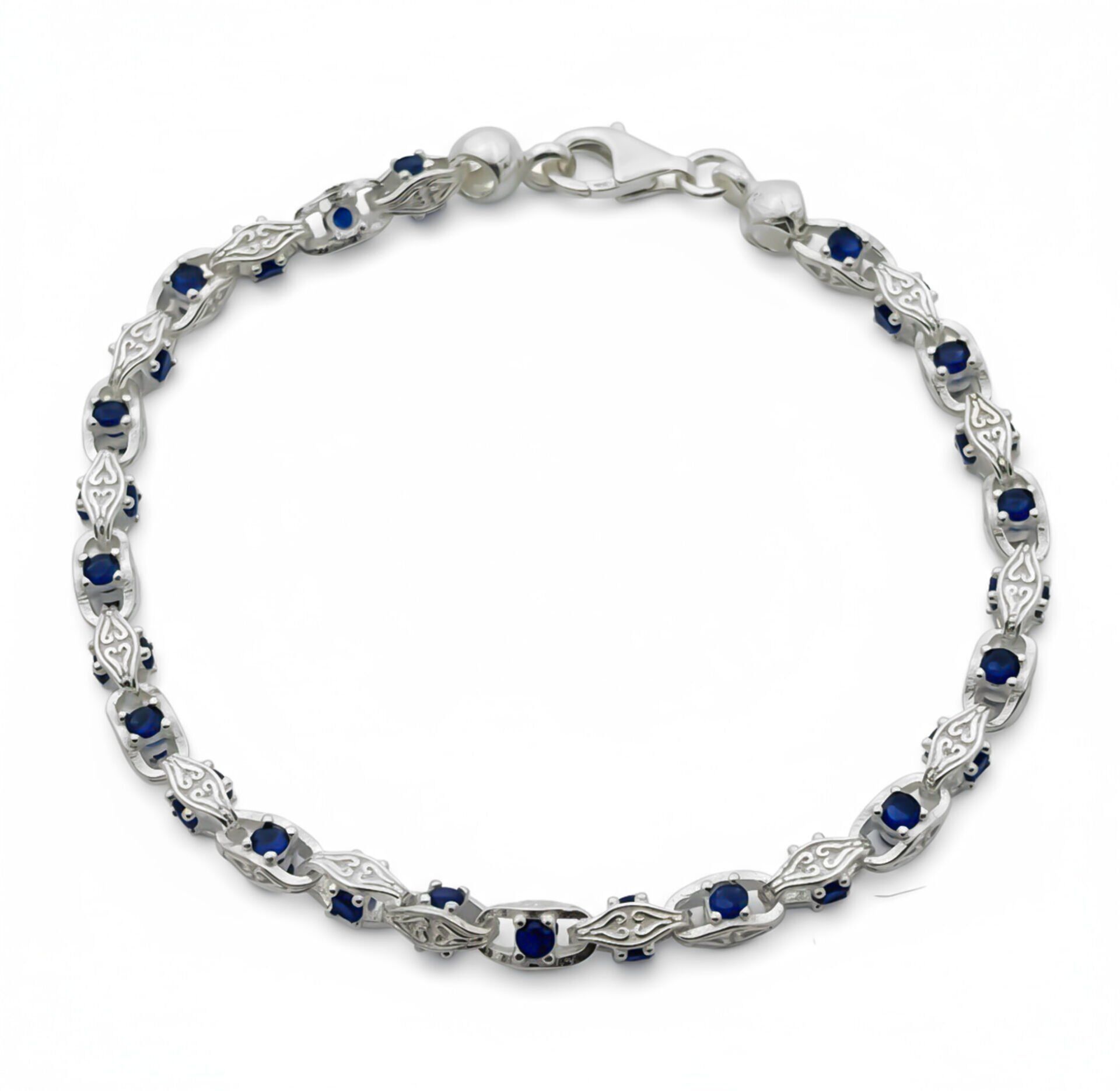 Zarif mavi taş detayıyla göz alıcı bir ışıltı sunan bu bileklik, 925 ayar gümüşten üretilmiştir. Şık ve sade tasarımıyla hem günlük kullanıma hem de özel davetlere uyum sağlar. Parlak görünümü ve kaliteli işçiliğiyle stilinizi zarif bir dokunuşla tamamlar.