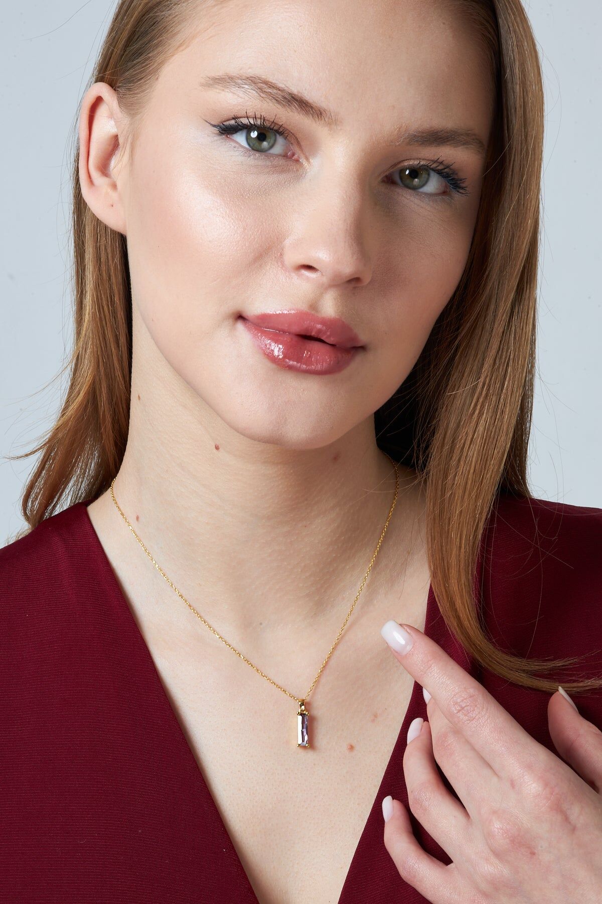 mor baget taşlı kolye