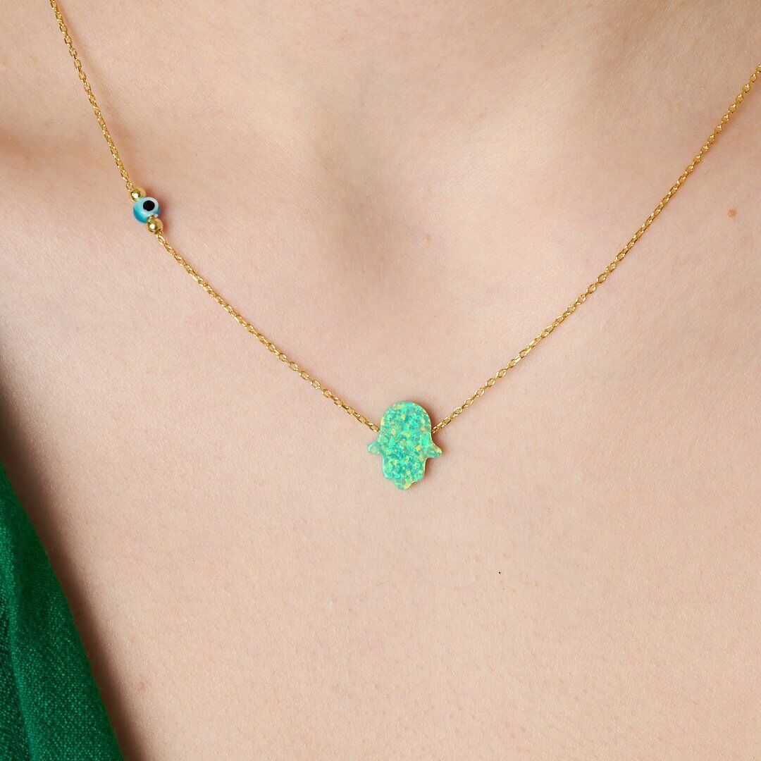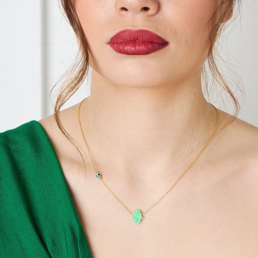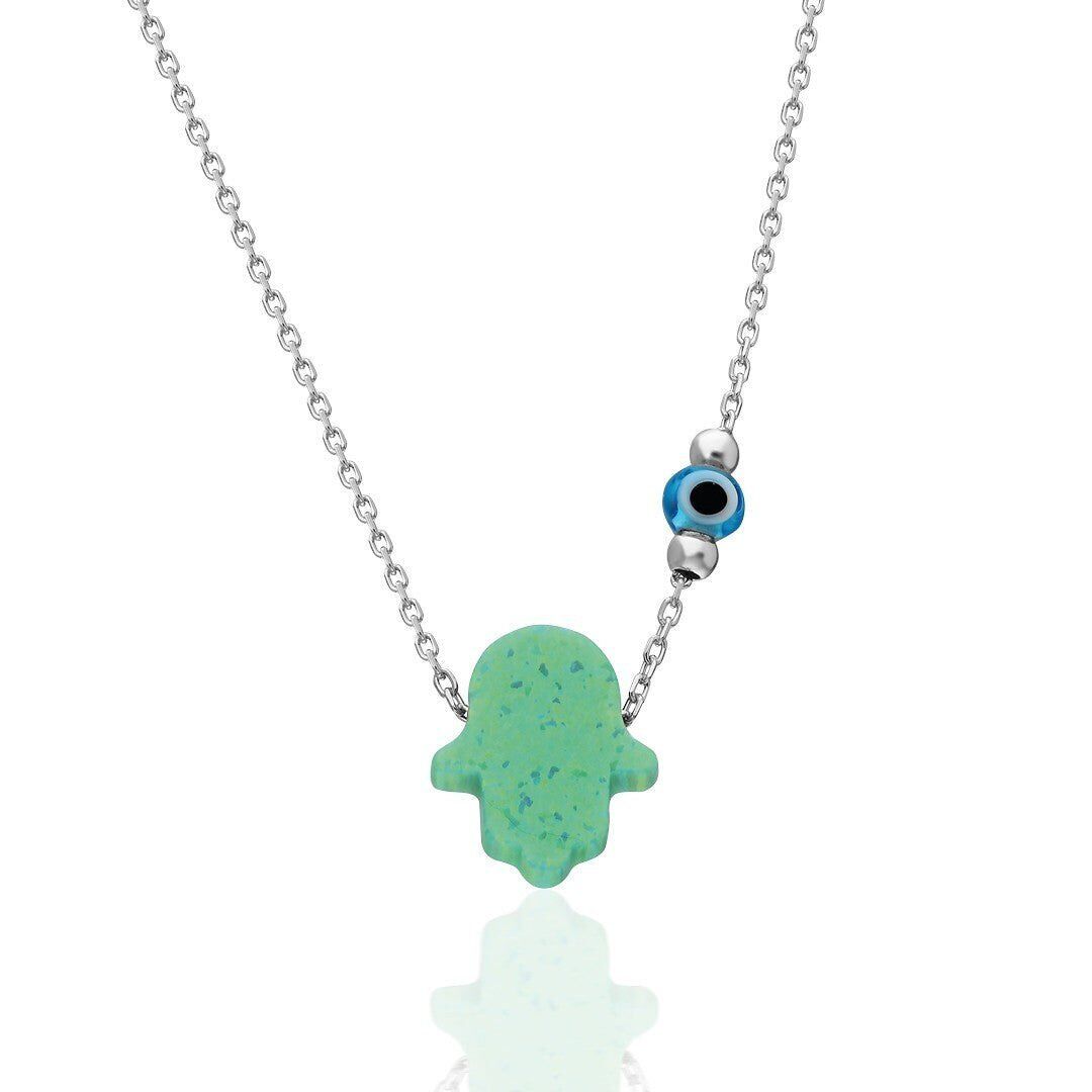 Orijinal Yeşil Opal Fatma El Kolyesi 1 - 925 Ayar Gümüş