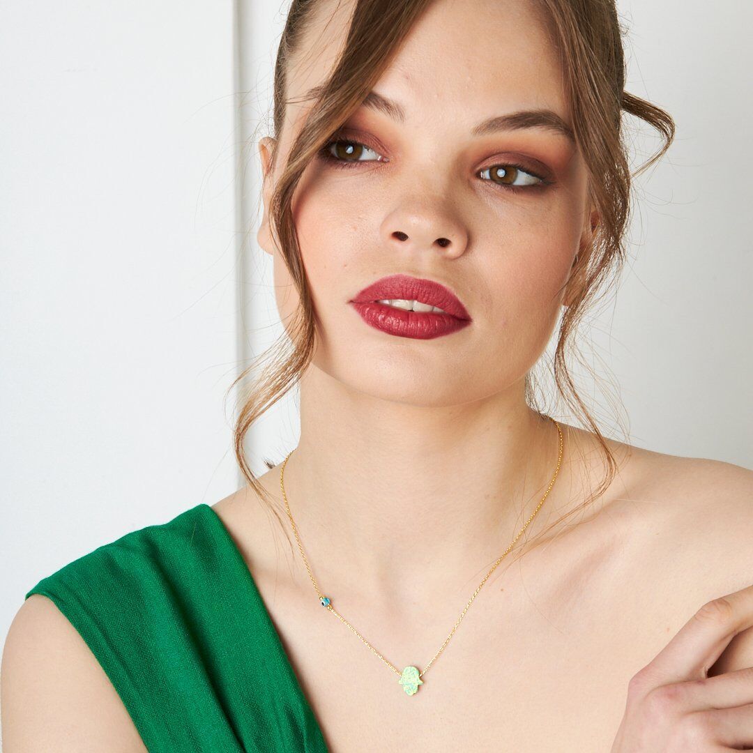Orijinal Yeşil Opal Fatma El Kolyesi 1 - 925 Ayar Gümüş, 925 ayar gümüşün zarifliğini modern tasarımla buluşturuyor. El işçiliğiyle üretilen bu Orijinal Yeşil Opal Fatma El Kolyesi 1, her kombine uyum sağlayan şık bir aksesuardır.