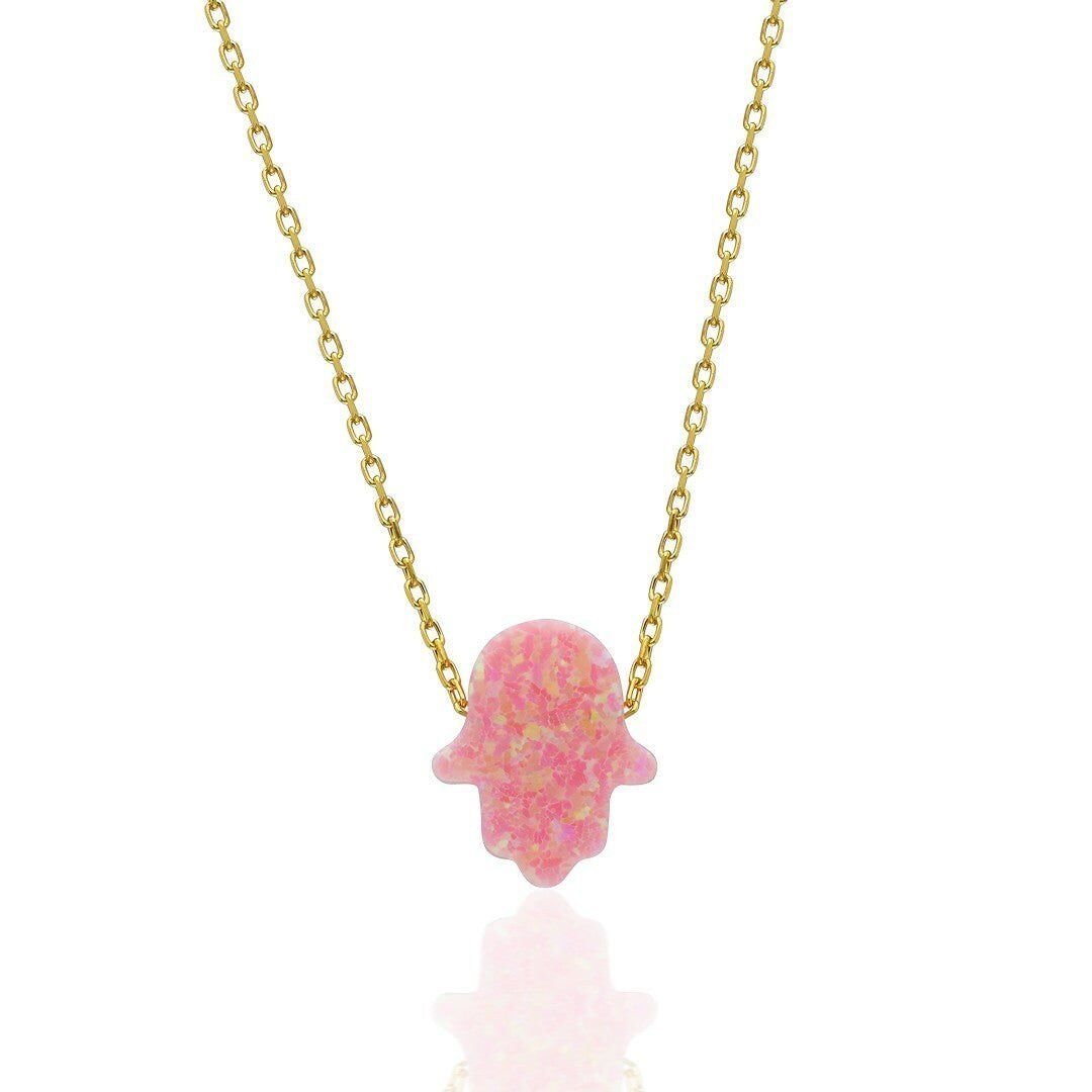 Orjinal Pembe Basit Opal Fatma El Kolye - 925 GÜMÜŞ