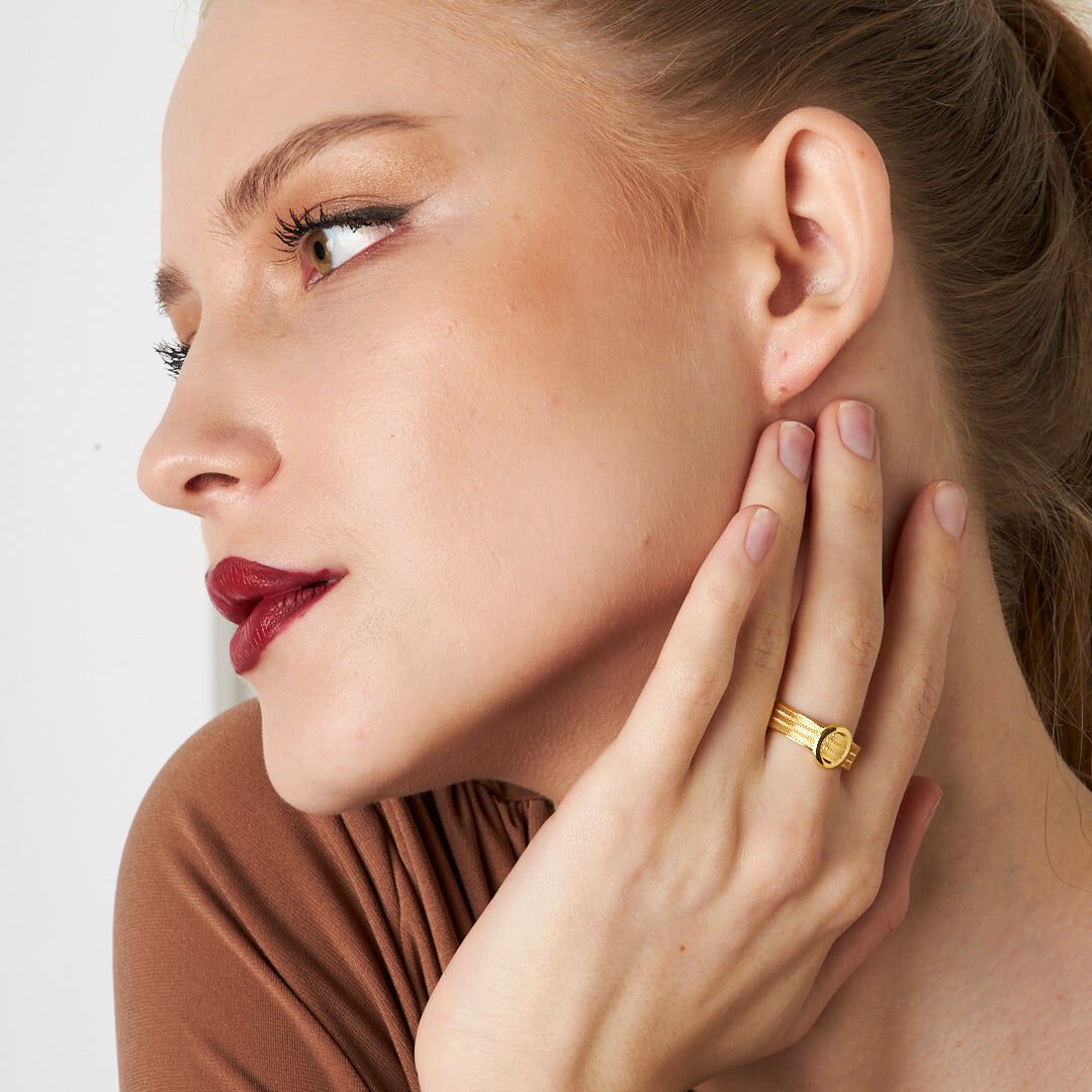 oval taşlı örgülü yüzük