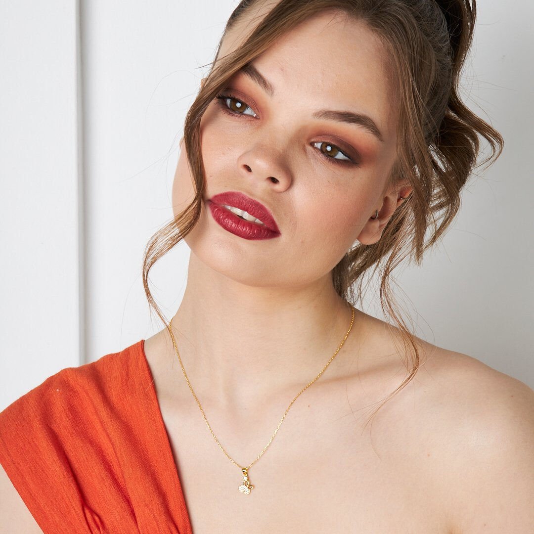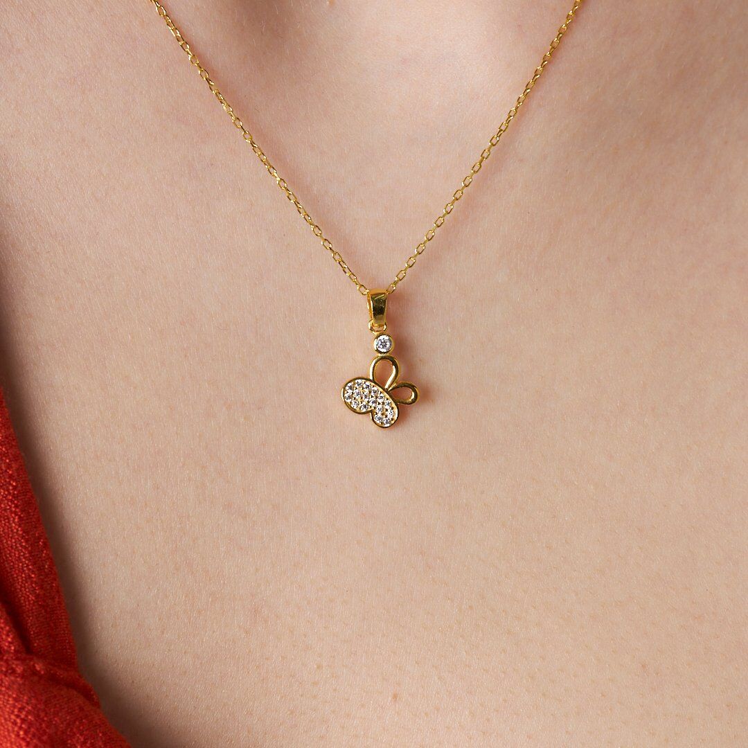 puantiyeli taşlı kelebek kolye