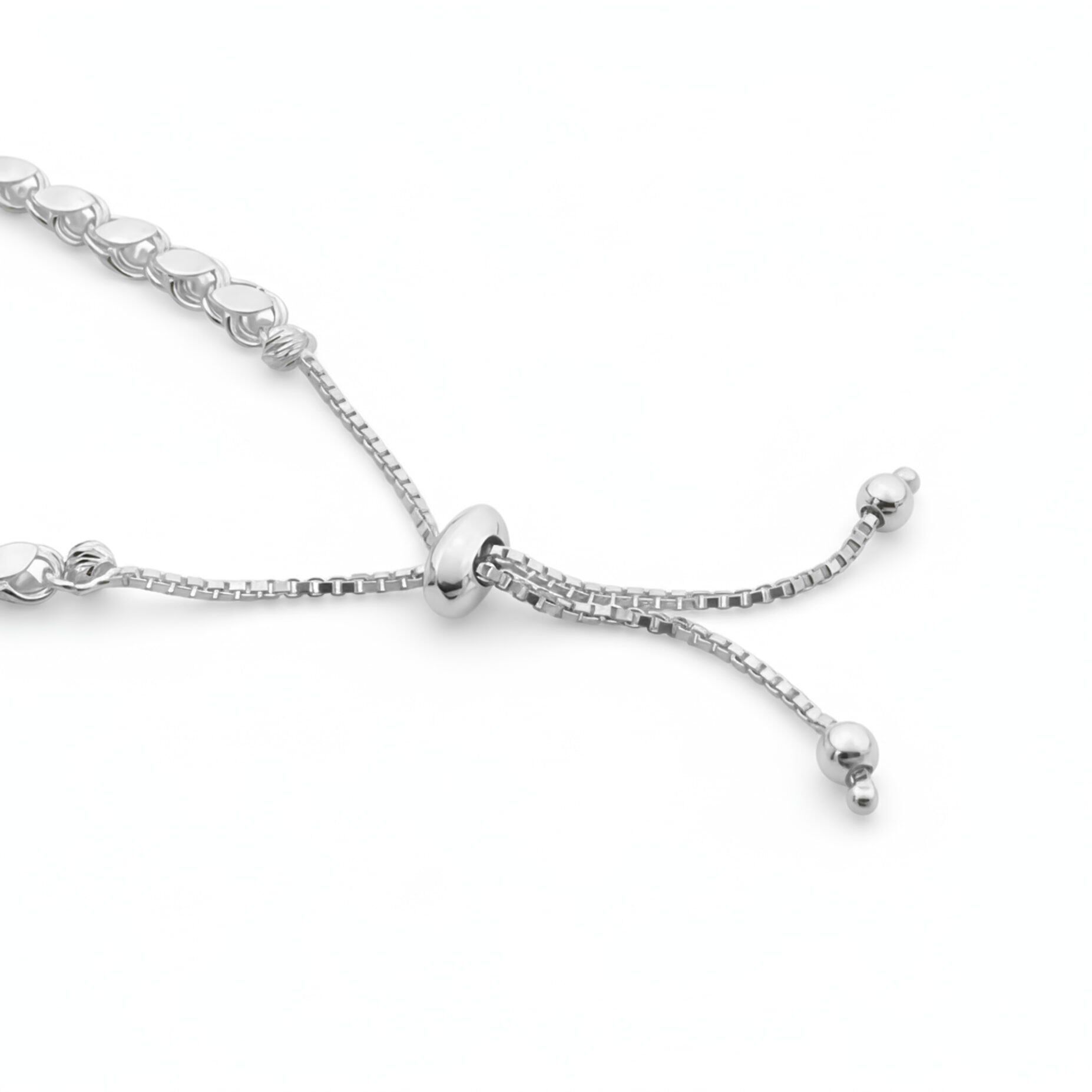 Zarif pullu zincir tasarımıyla ışıltılı bir görünüm sunan bu bileklik, 925 ayar gümüşten üretilmiştir. Asansörlü mekanizması sayesinde bileğe kolayca uyum sağlar ve konforlu bir kullanım sunar. Günlük şıklığınızdan özel davet kombinlerinize kadar her stile uyum sağlayan bu model, sade ama göz alıcı bir detay arayanlar için ideal bir seçimdir.