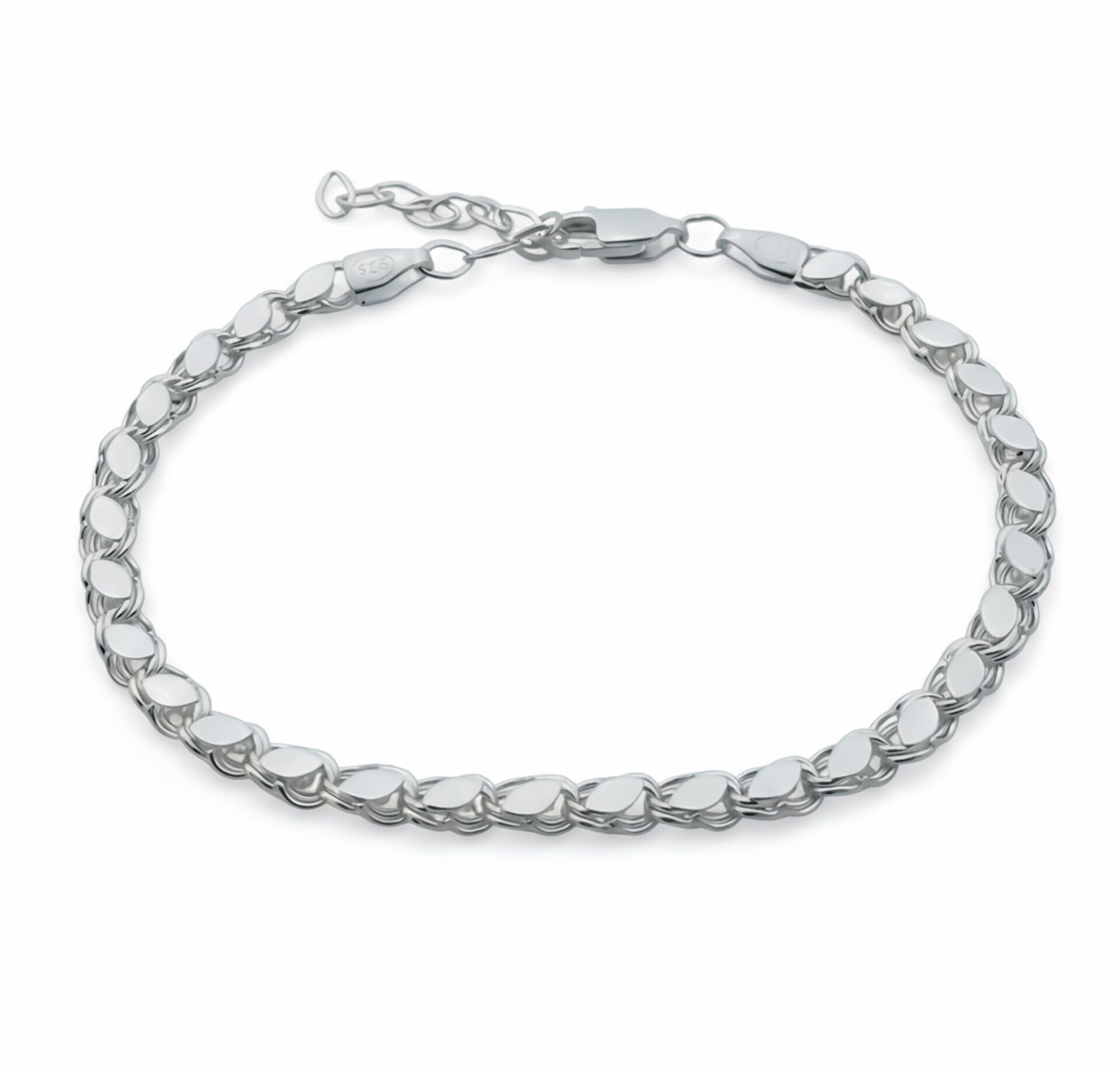 Işıltılı pullu zincir tasarımıyla zarif bir görünüm sunan bu bileklik, 925 ayar gümüşten üretilmiştir. Parlak yapısı sayesinde her kombinle uyum sağlar ve günlük ya da özel günlerde şıklığınızı tamamlar. Dayanıklı ve modern tasarımıyla sade ama dikkat çekici bir aksesuardır.