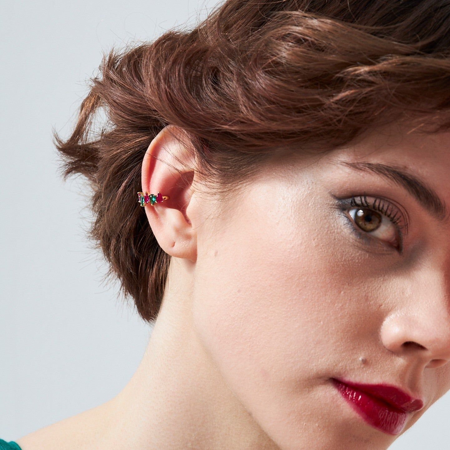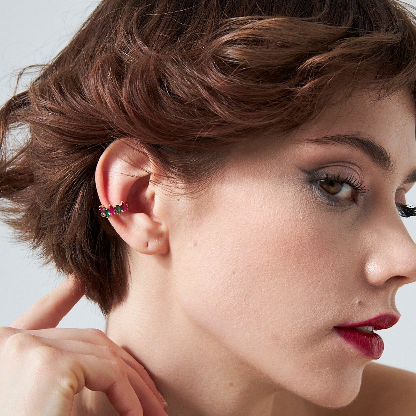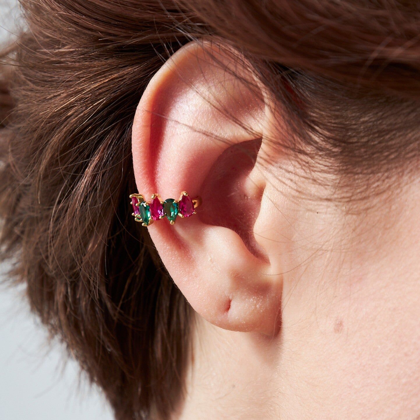 renkli damla taşlı kıkırdak küpeler