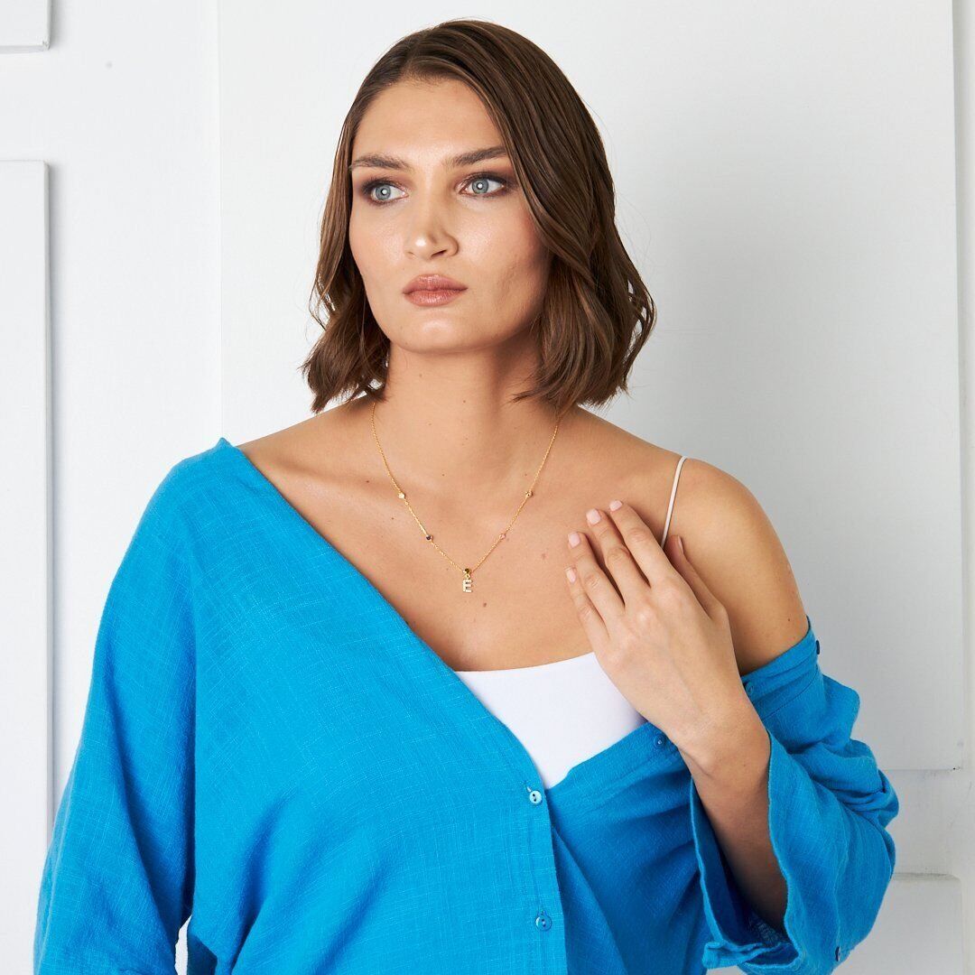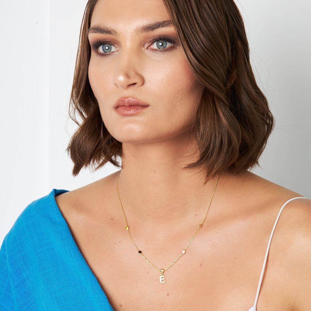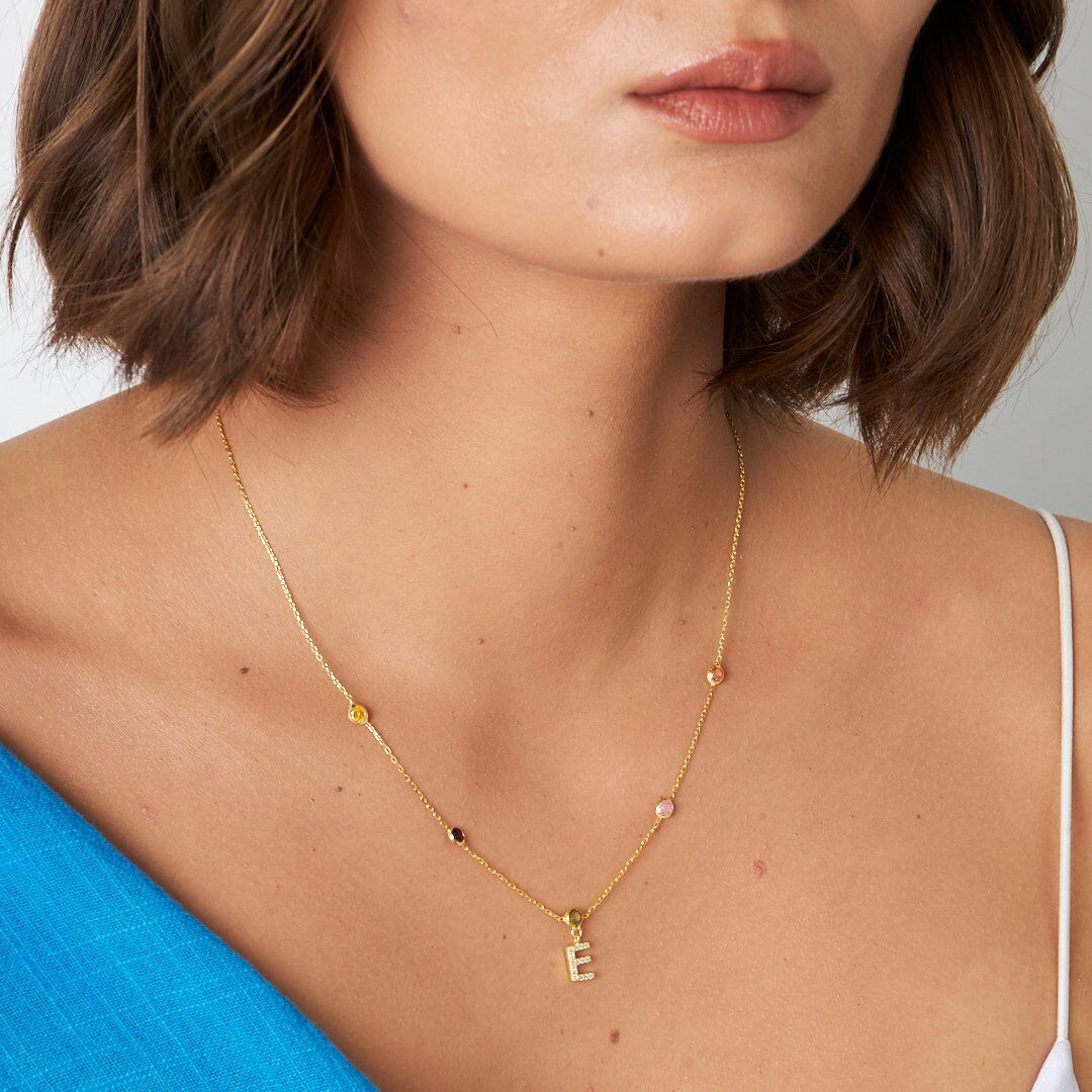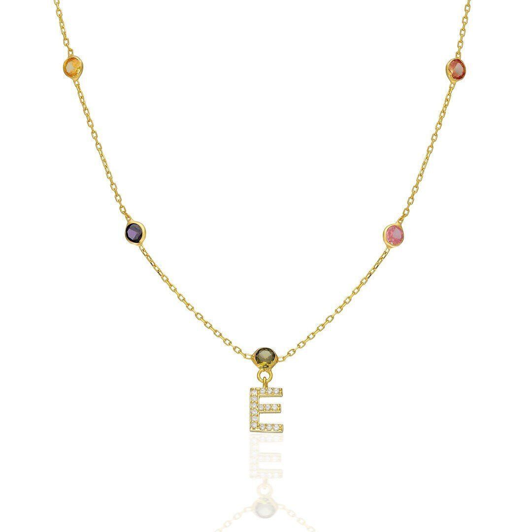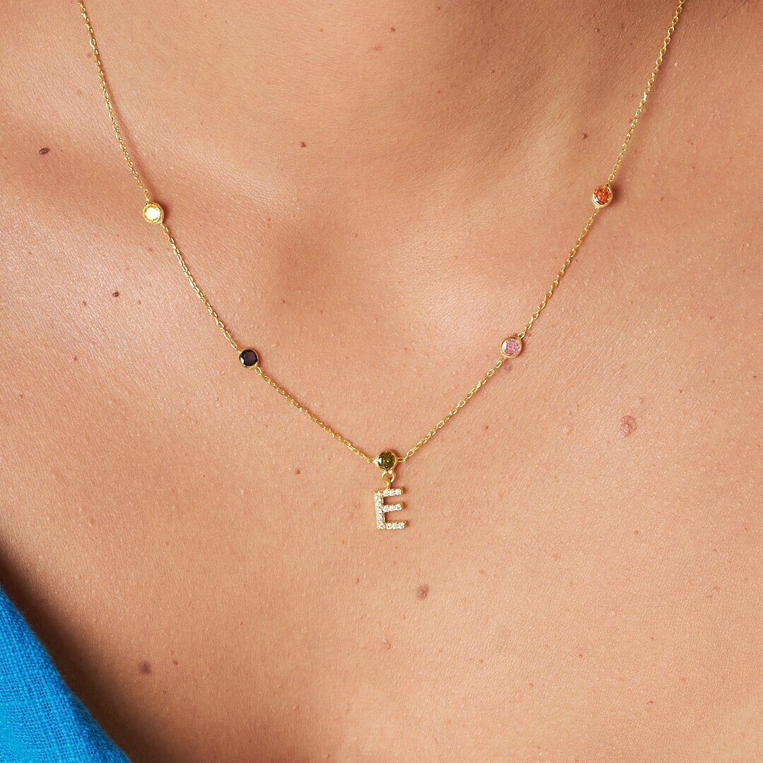 renkli taşlarla harf kolyesi