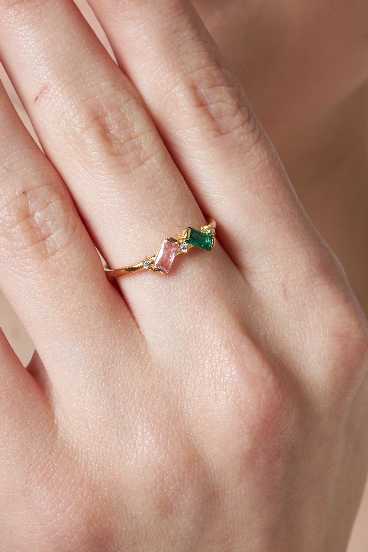 renkli taşlı baget yüzük 1
