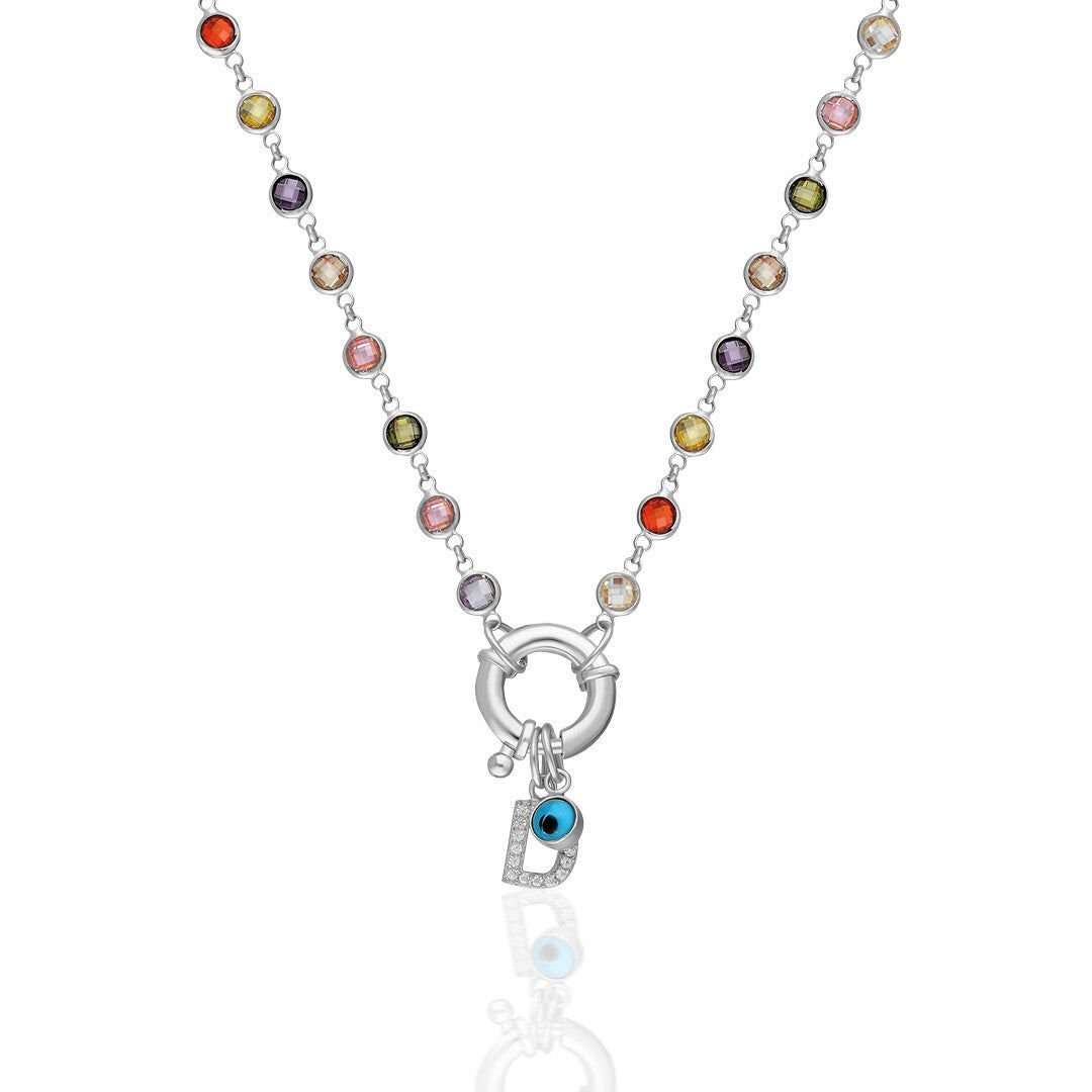 Nazar Harfli Rengarenk Kolye - 925 GÜMÜŞ