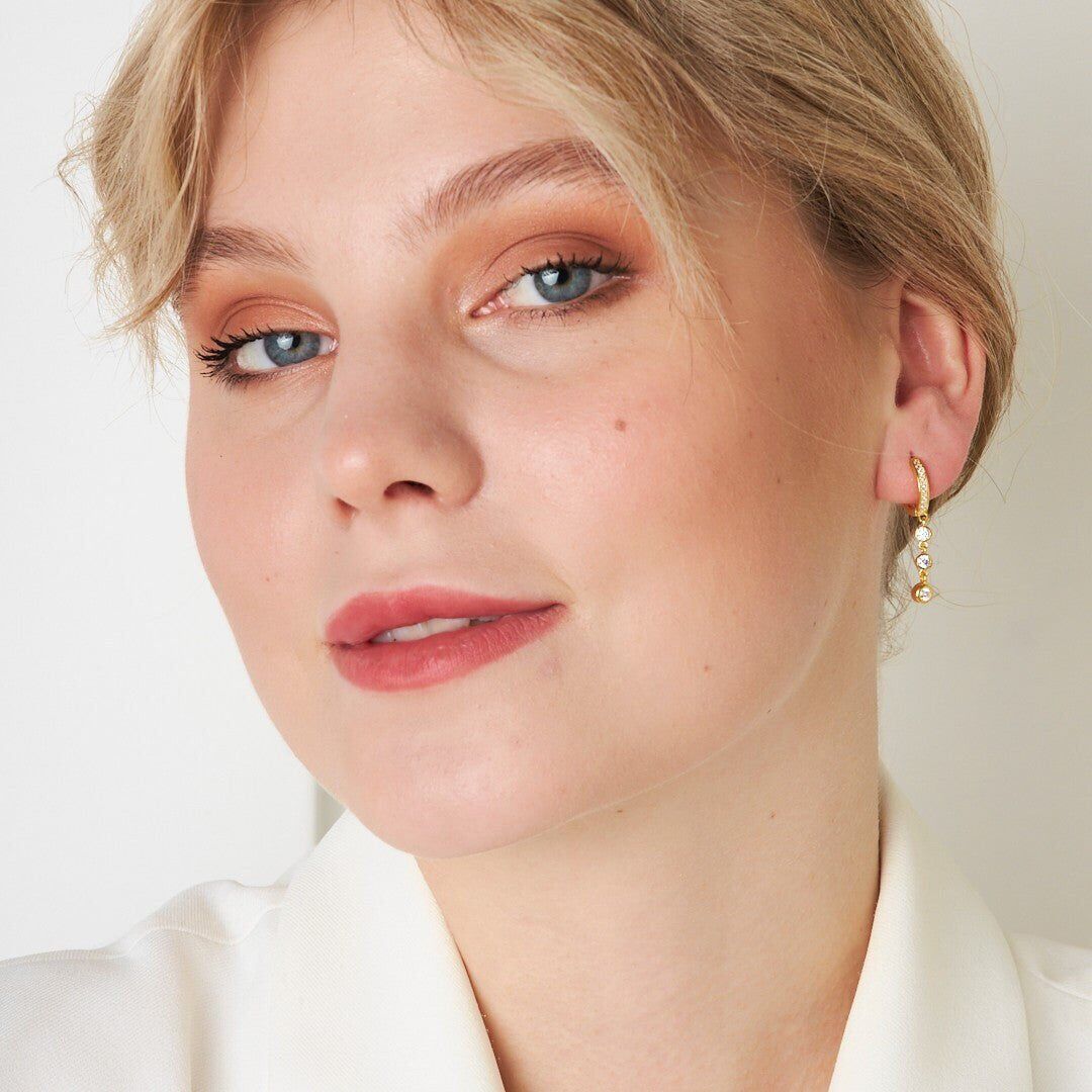 sallanan üç taşlı küpeler