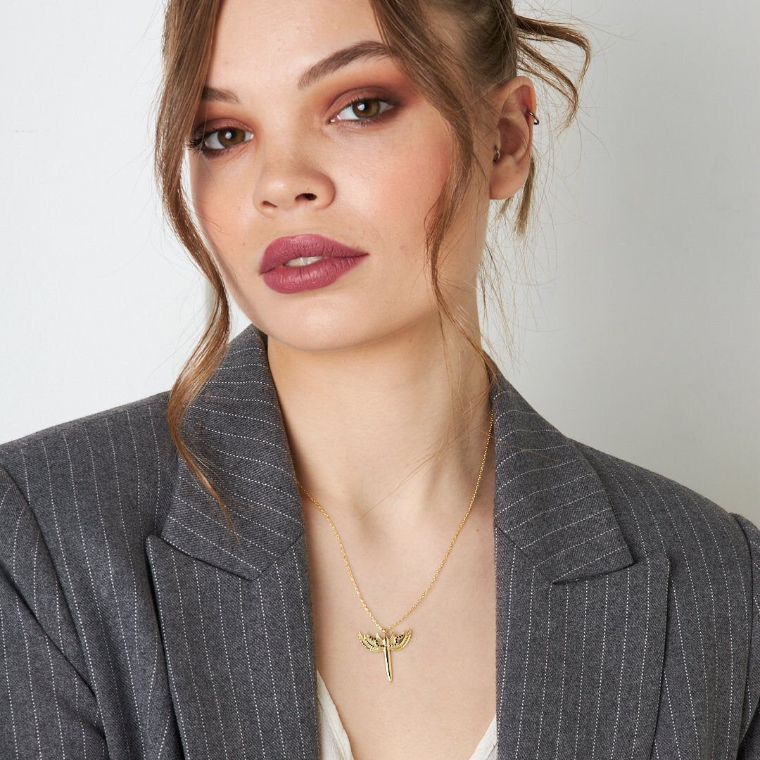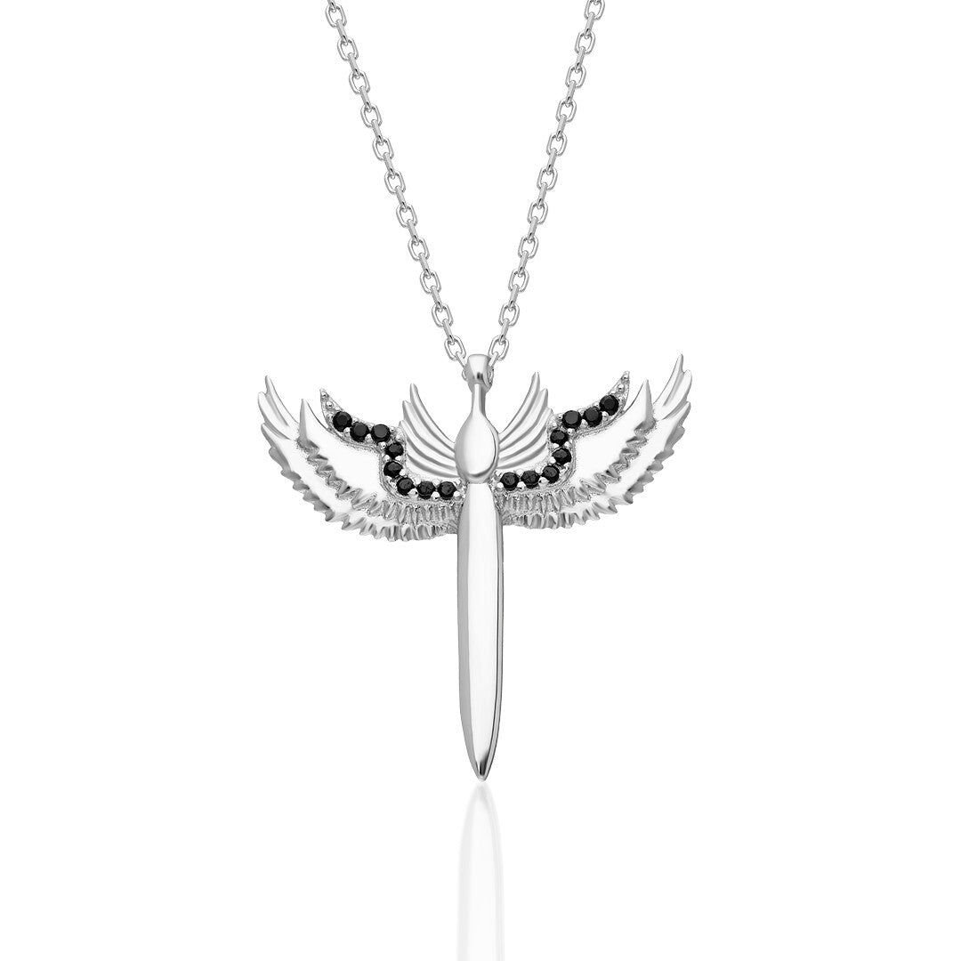 siyah taş detaylı melek kolyesi