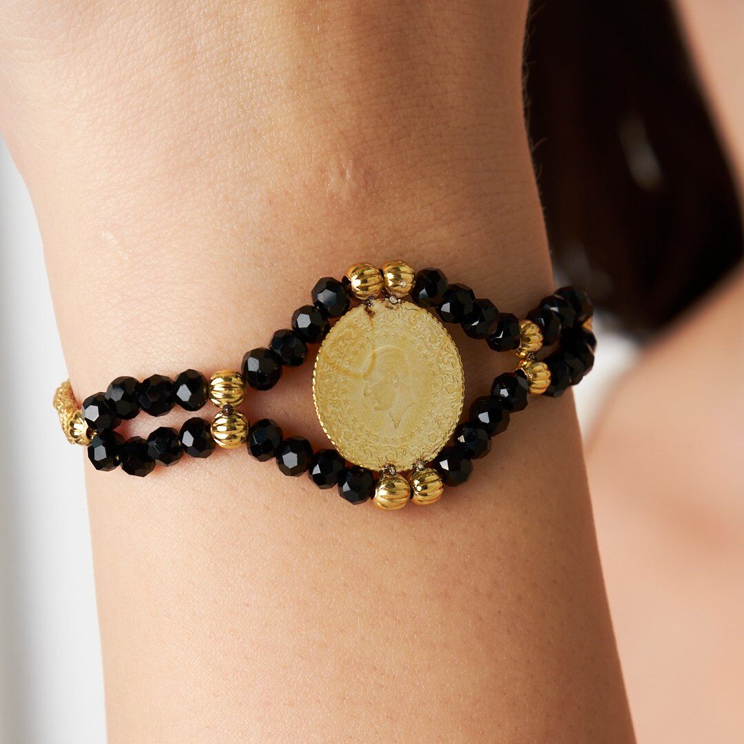 siyah taşlı çeyrek ip bilezik