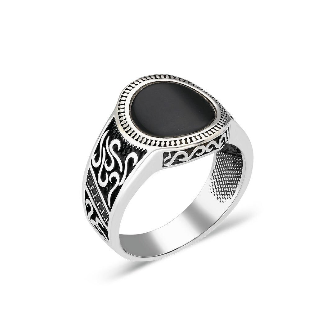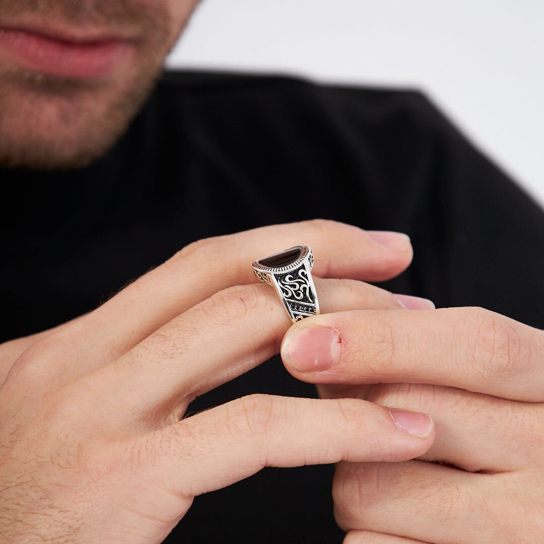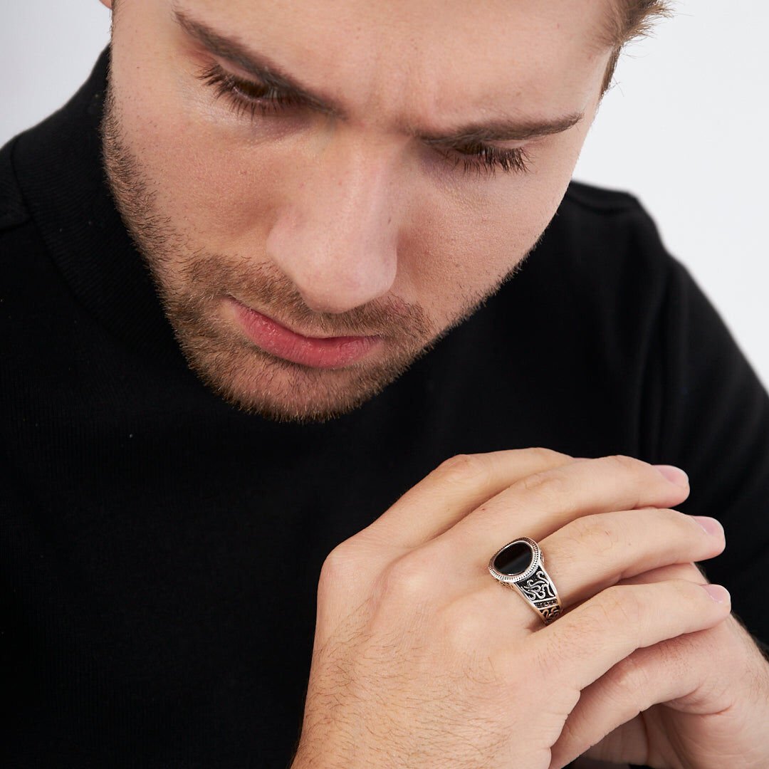siyah taşlı oval yüzük