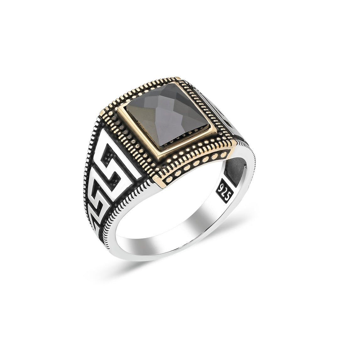 siyah taştan yapılmış oymalı kavisli halka