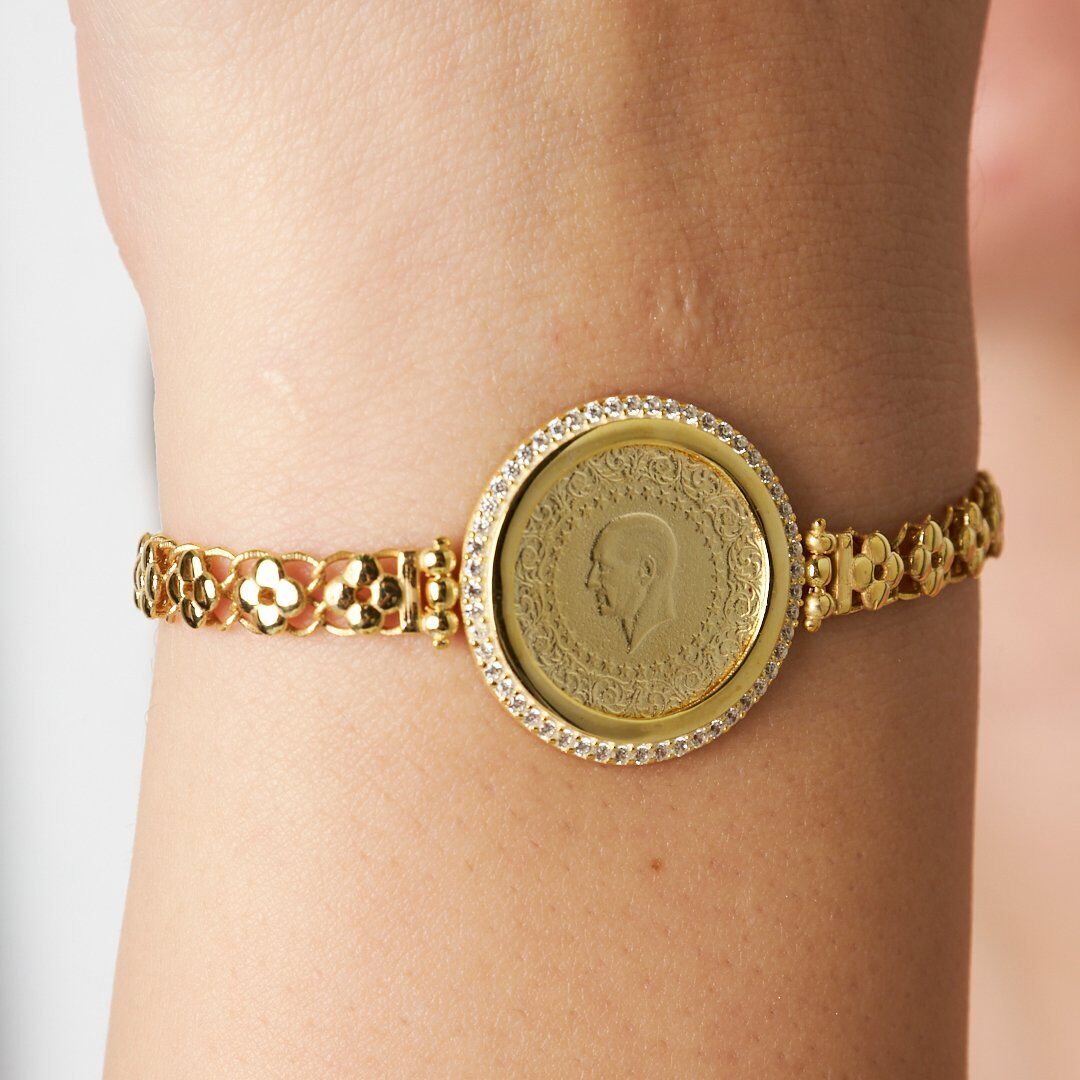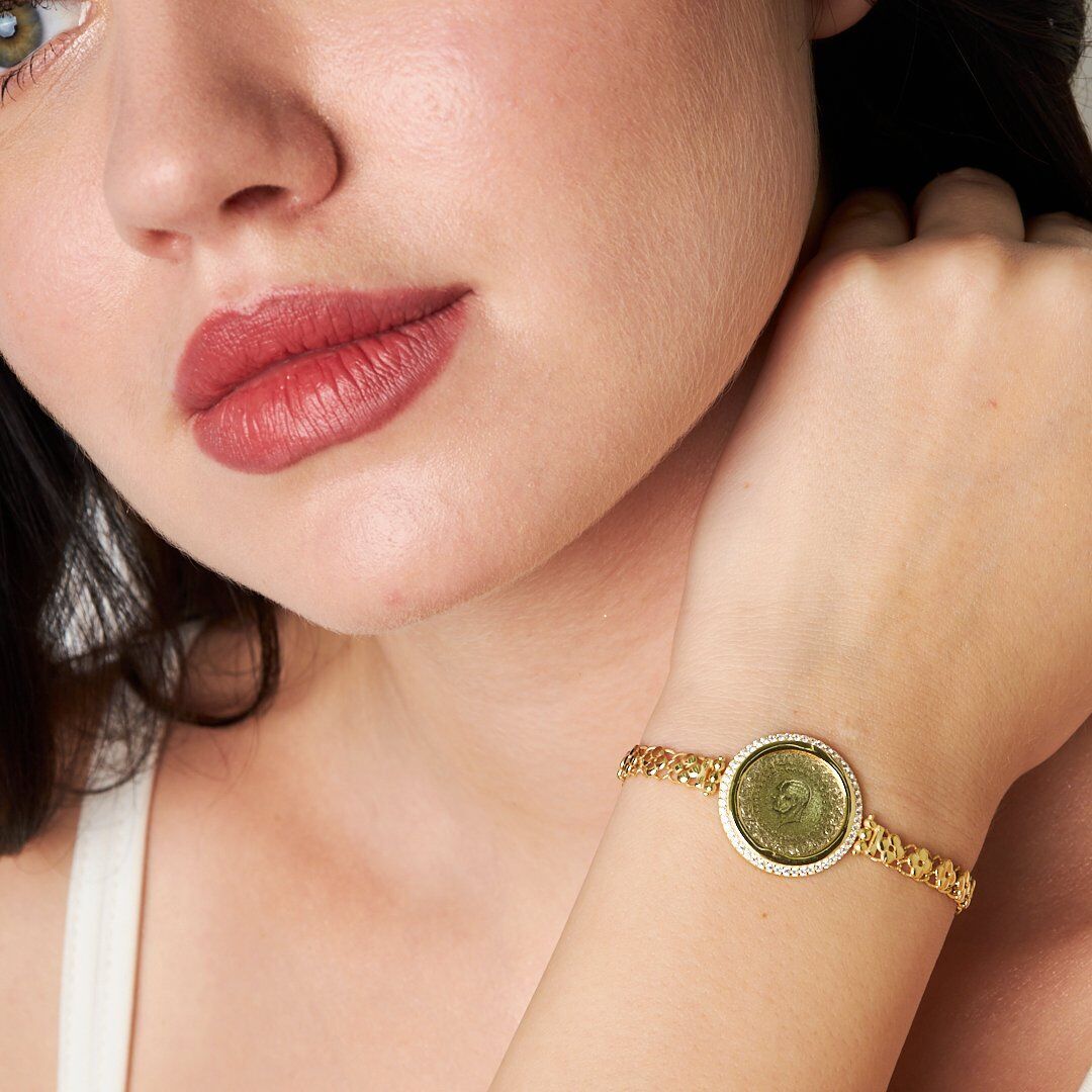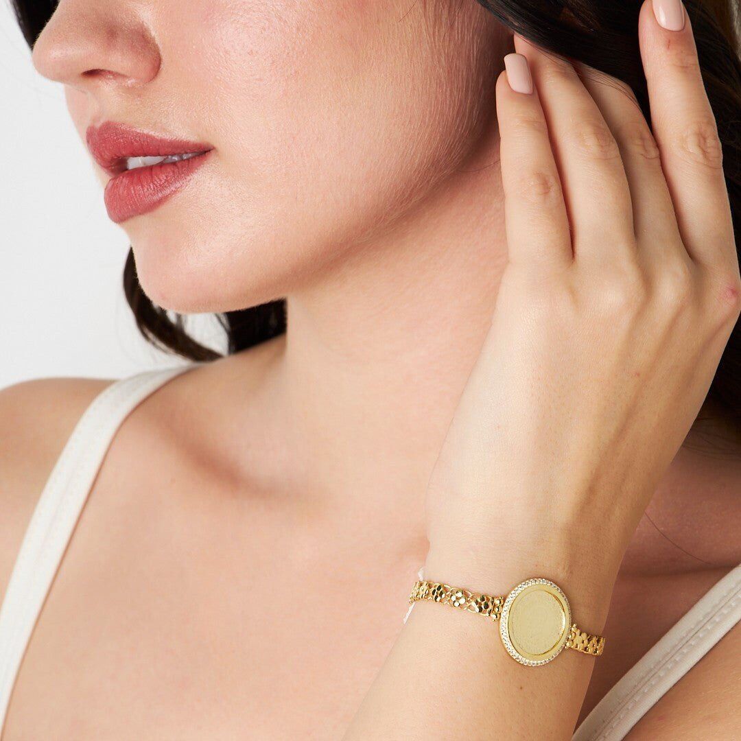 taş çerçeveli dört yapraklı yonca zincir bilezik