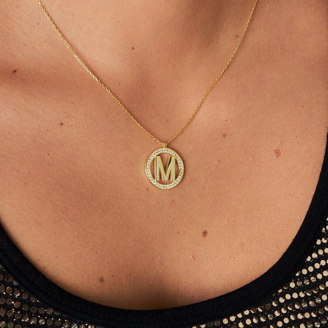 taş yüzüklü harf kolye