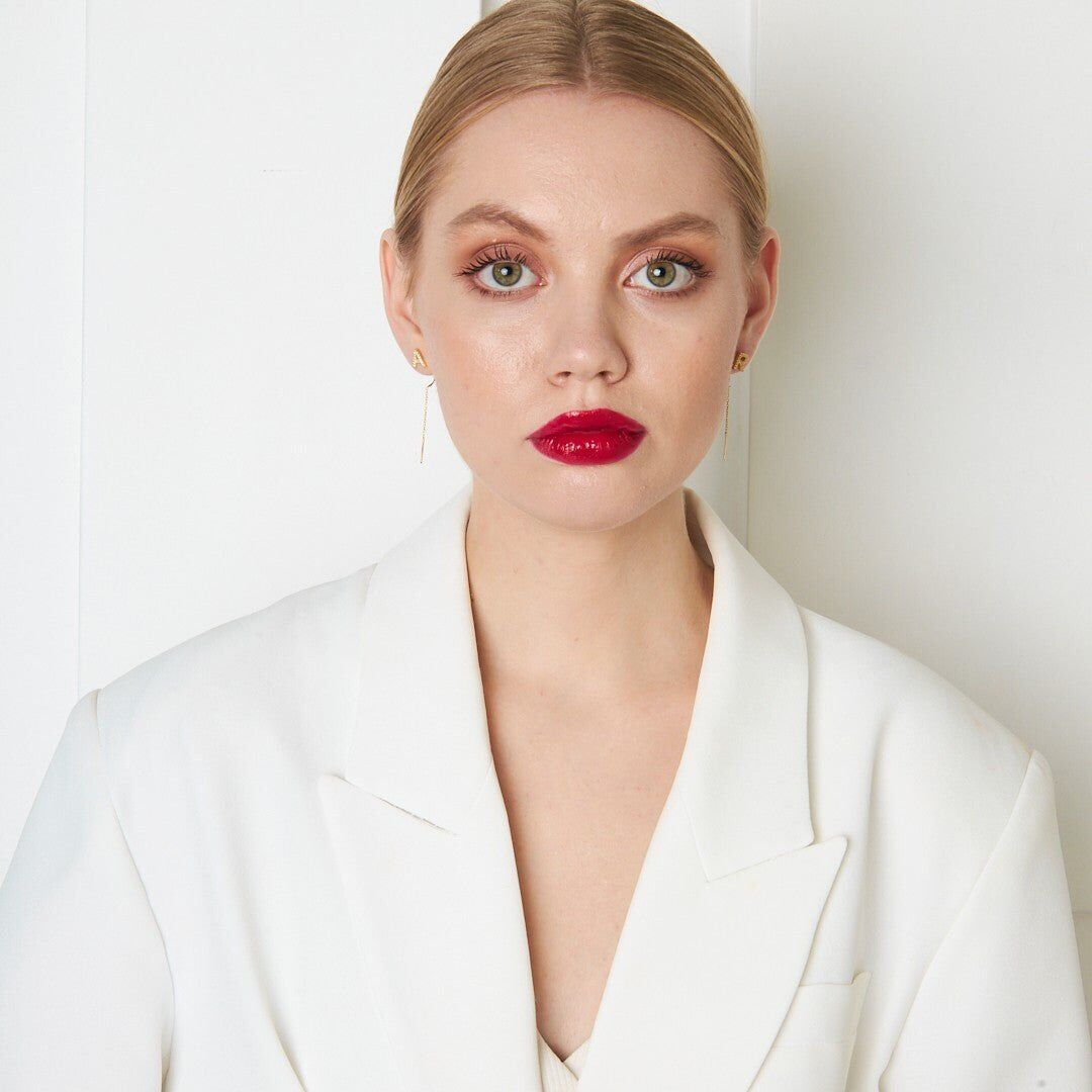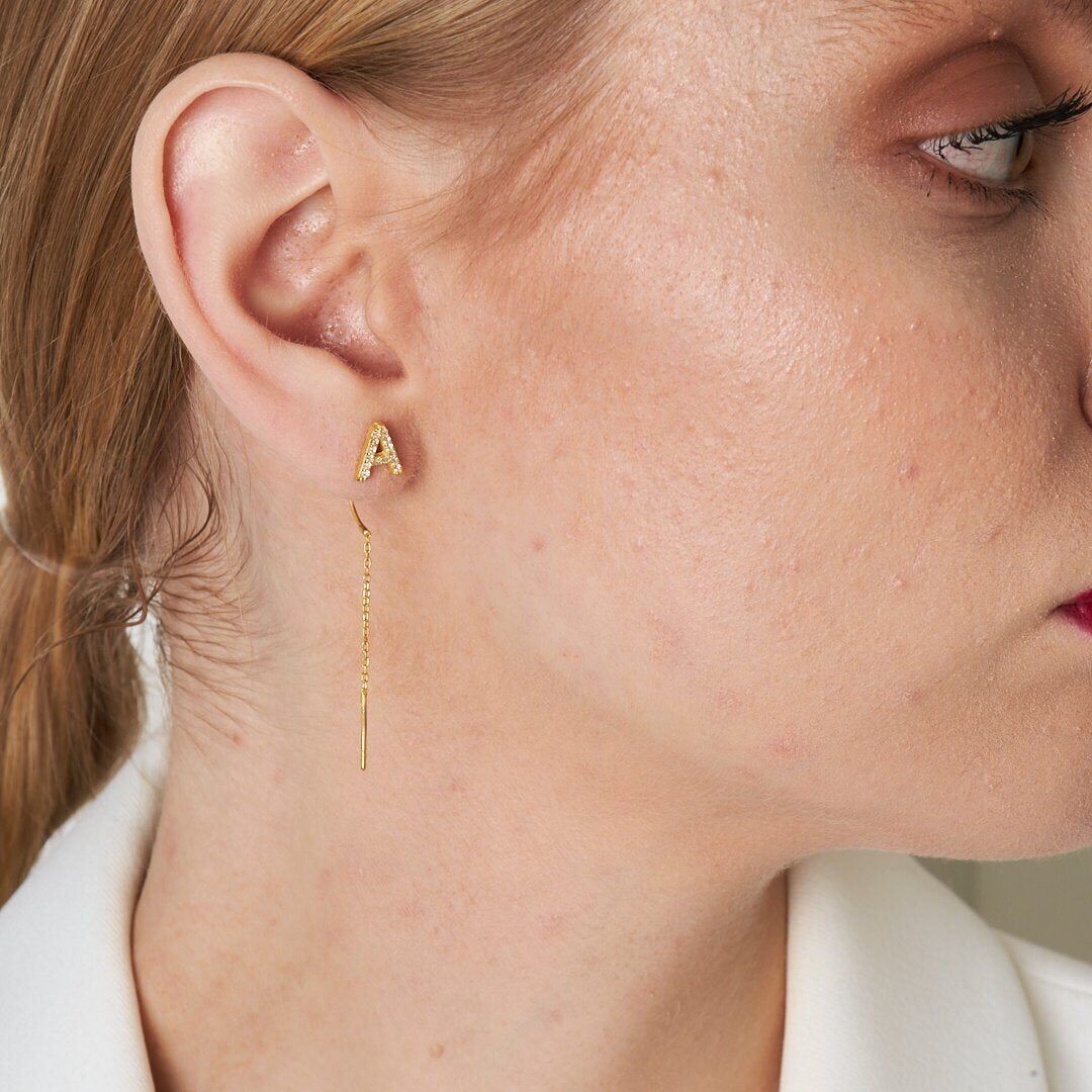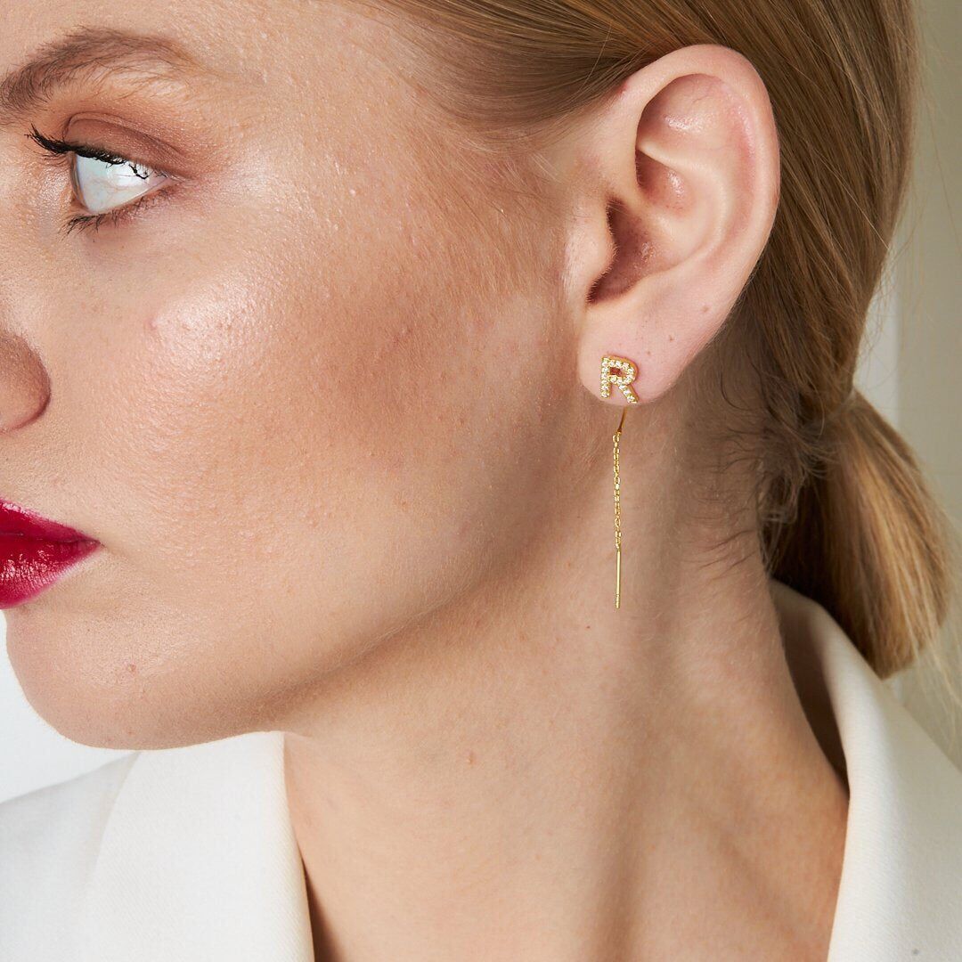 taşlı harf zincir küpeler