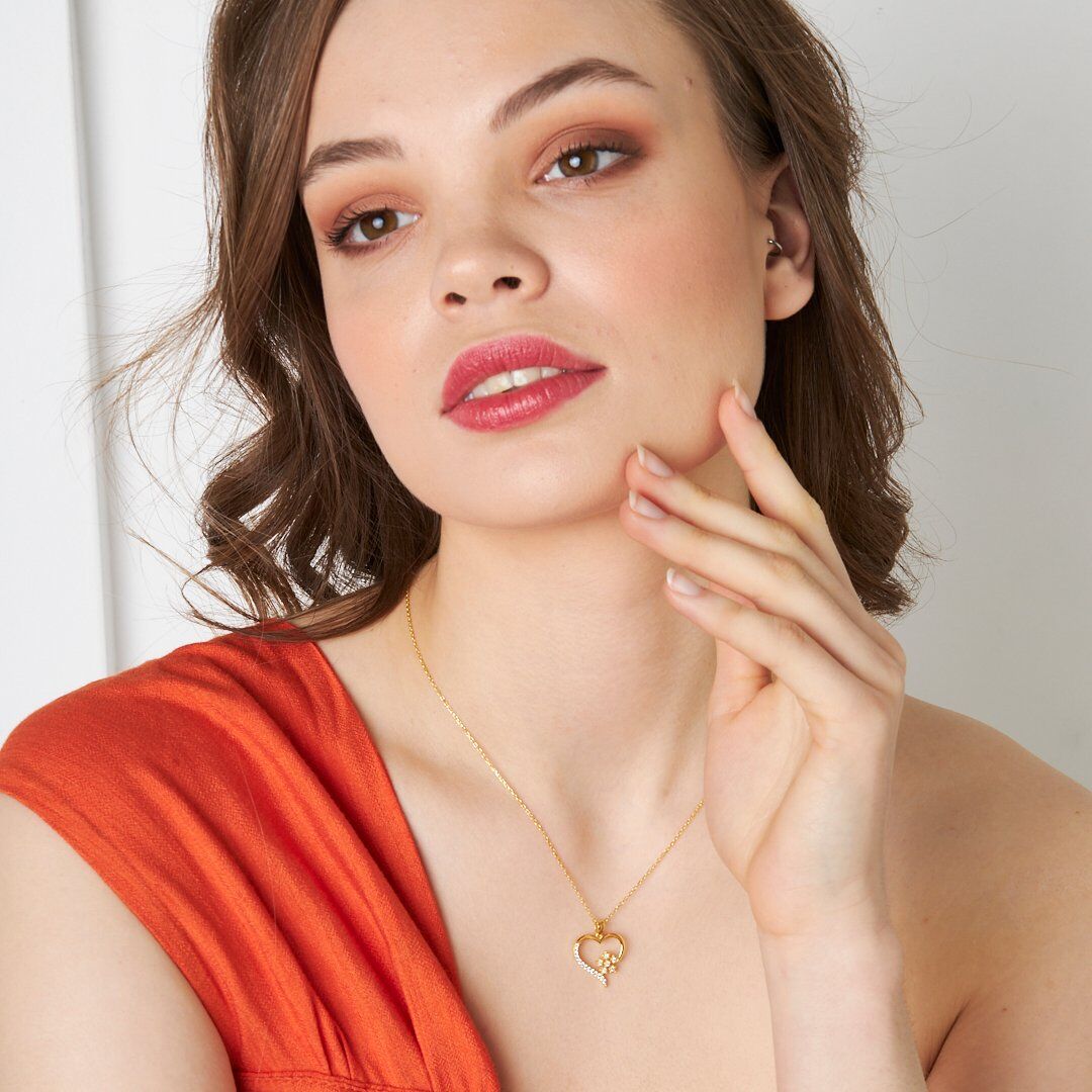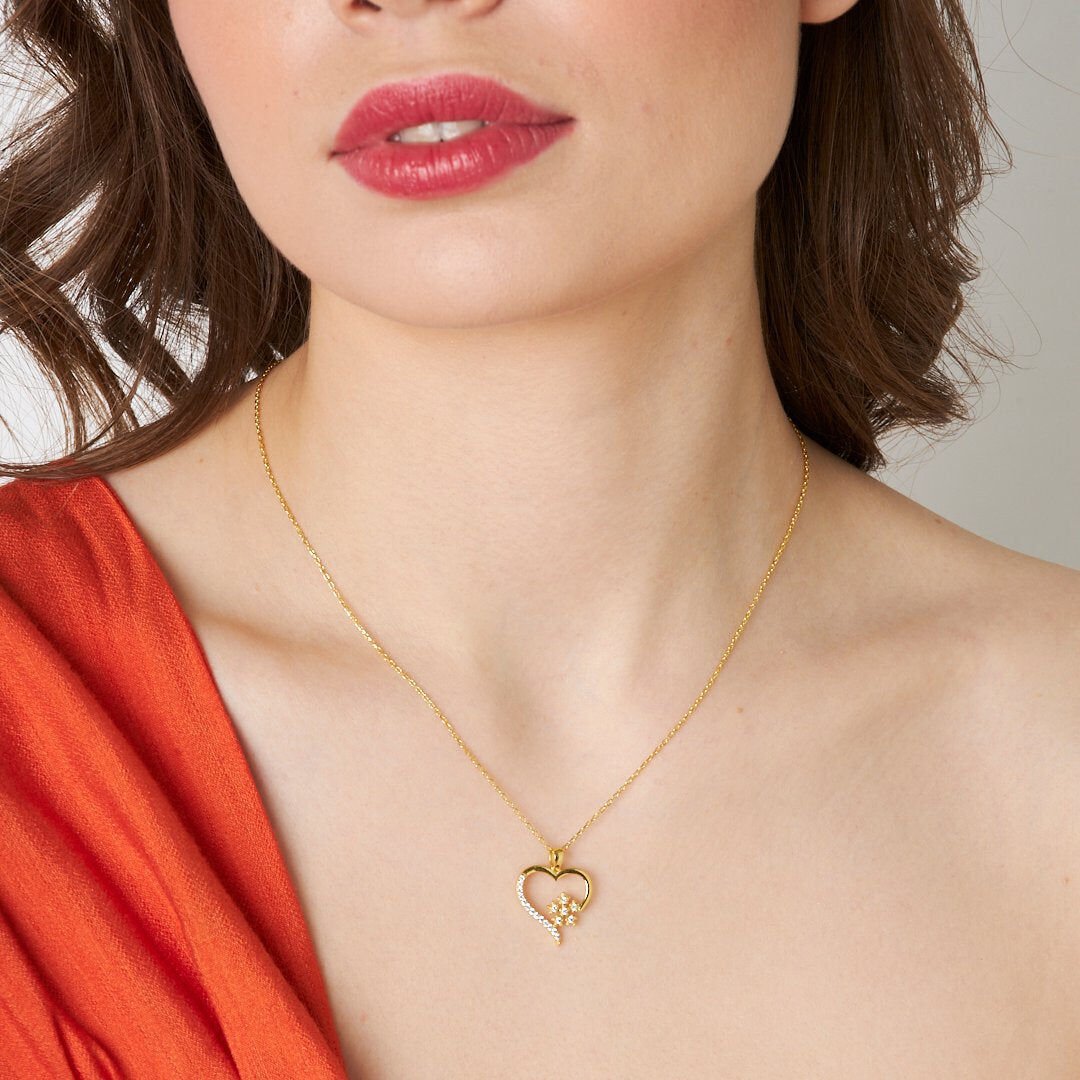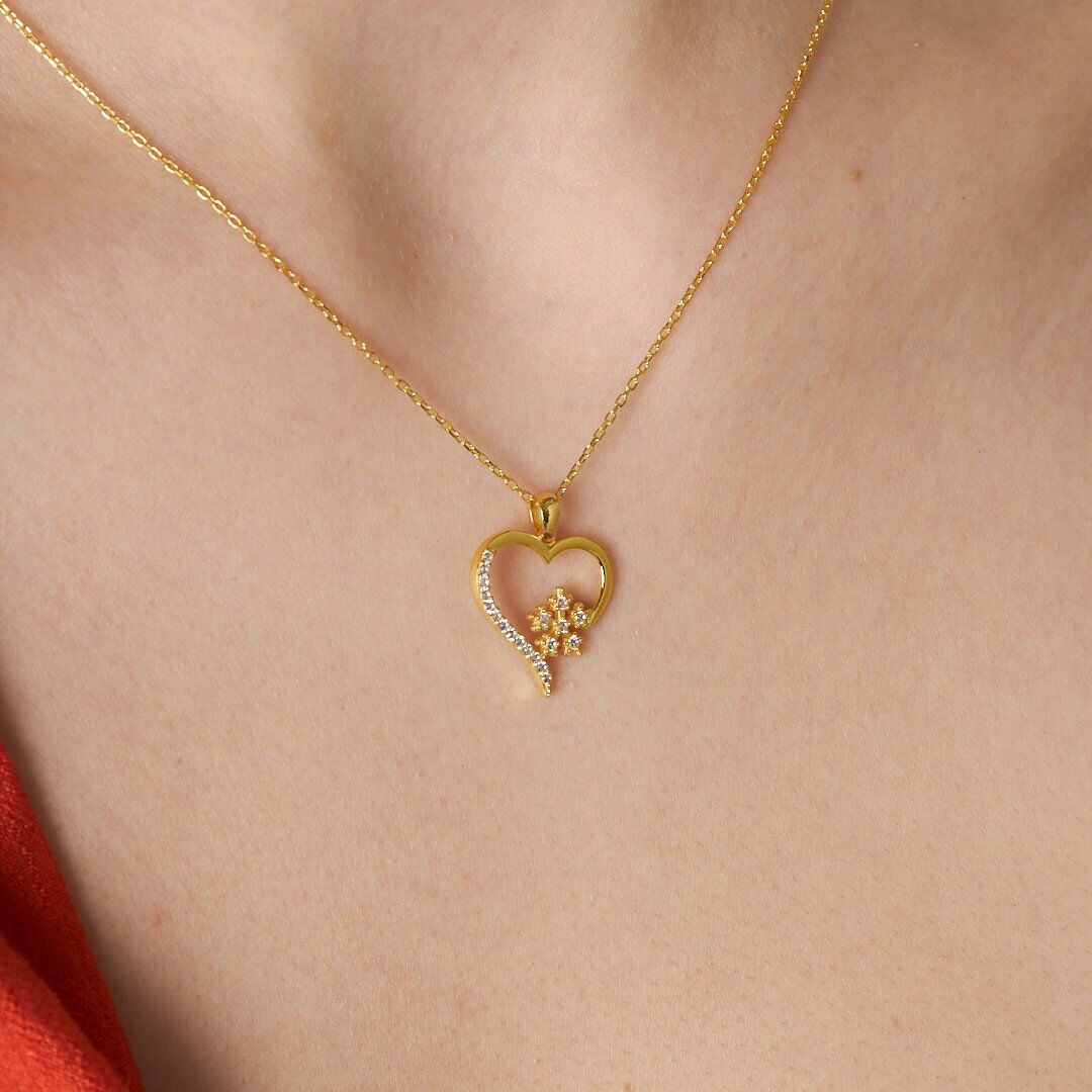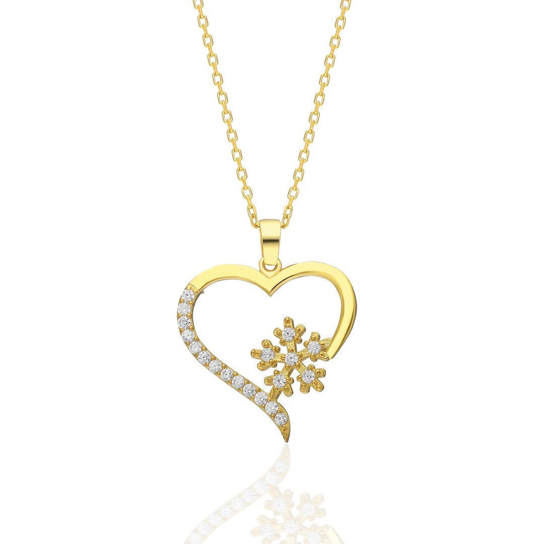 taşlı kar tanesi kalp kolye