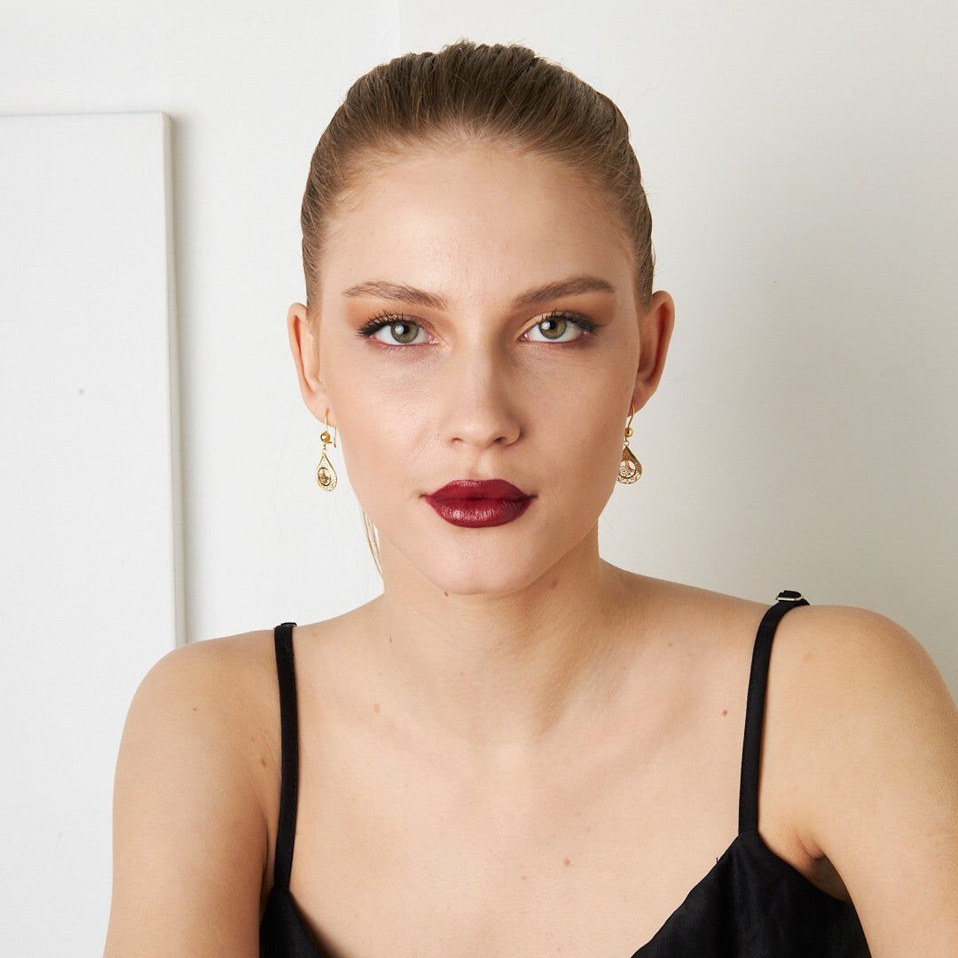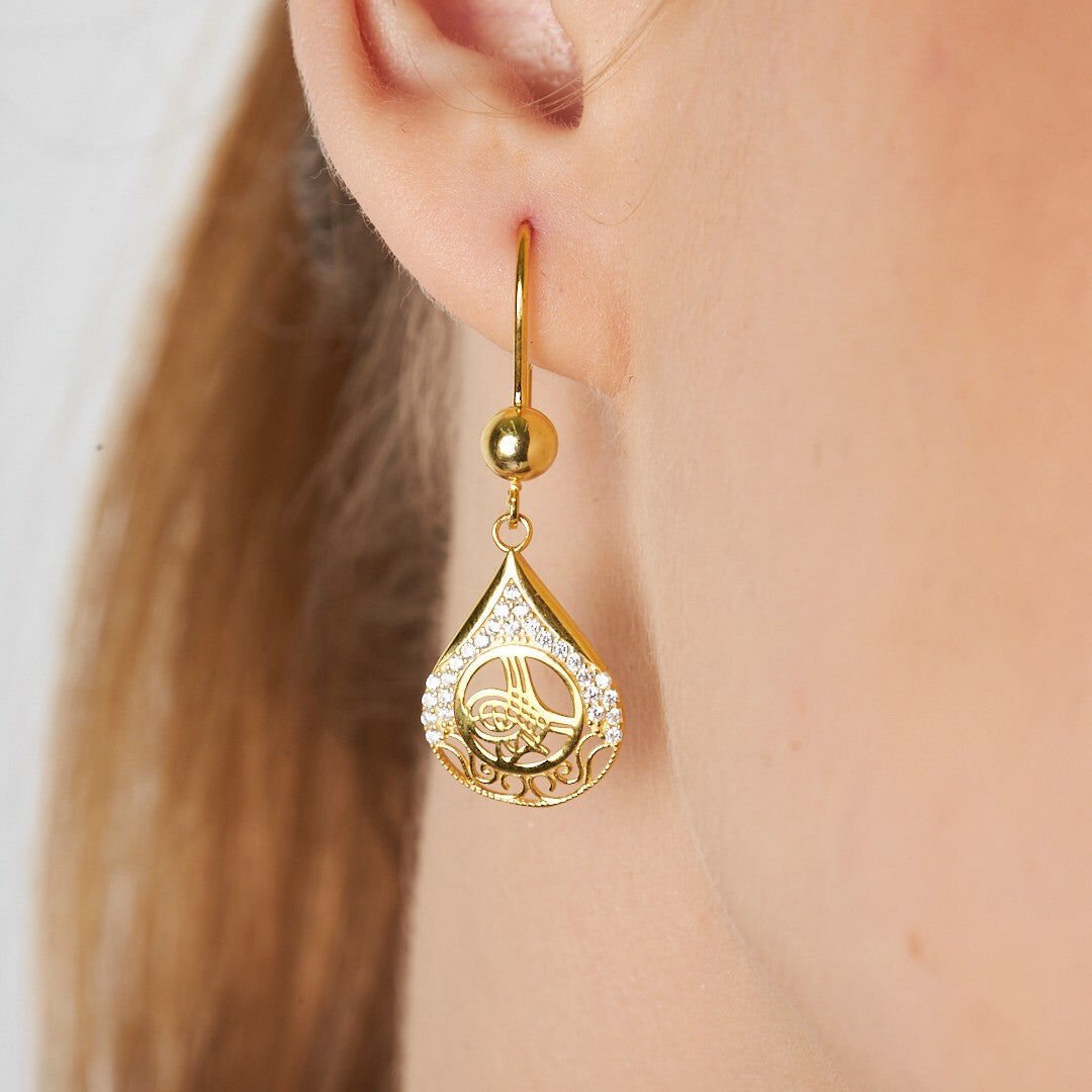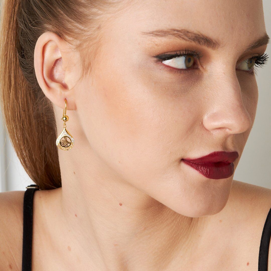taşlı monogram küpeler