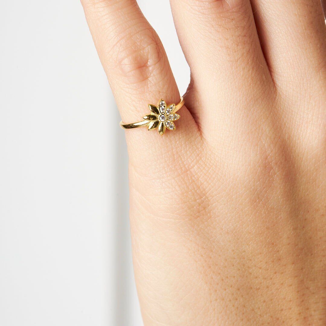 taşlı papatya yüzük