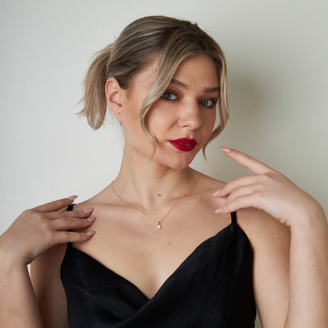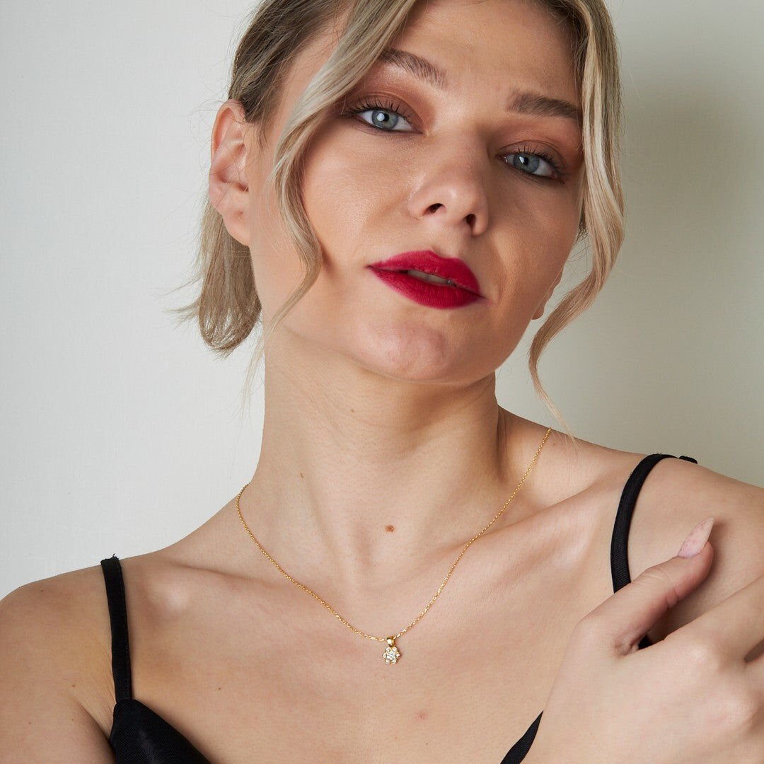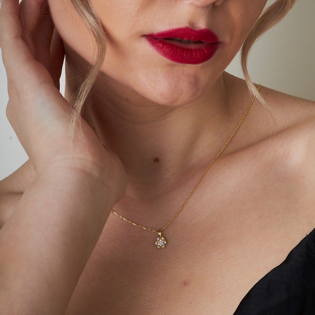 taşlı spiral şekilli çiçek kolyesi