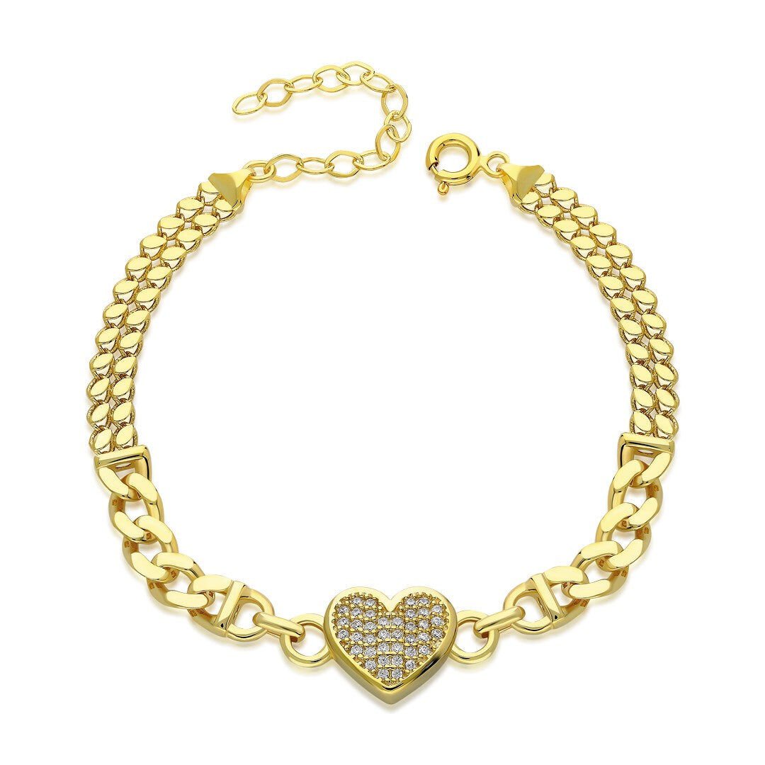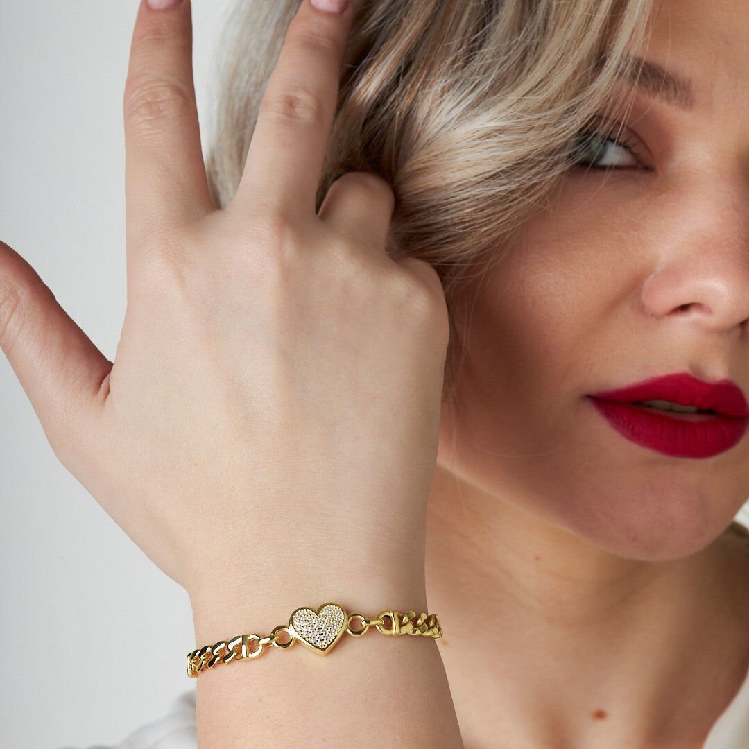 taşlı ve kalpli çift zincirli bilezik