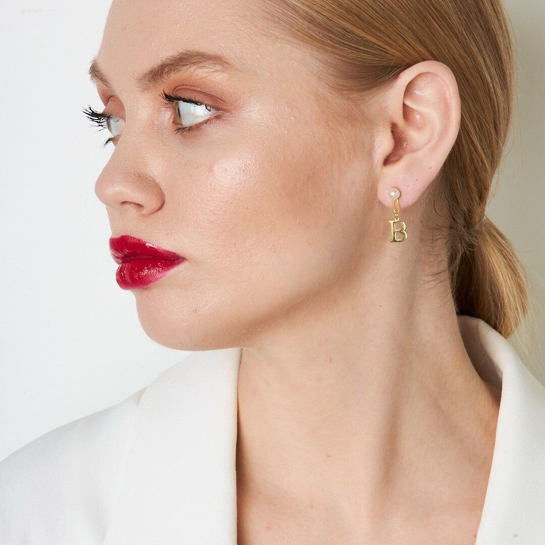 Toplu İnci Harfli Küpeler - 925 Ayar Gümüş
